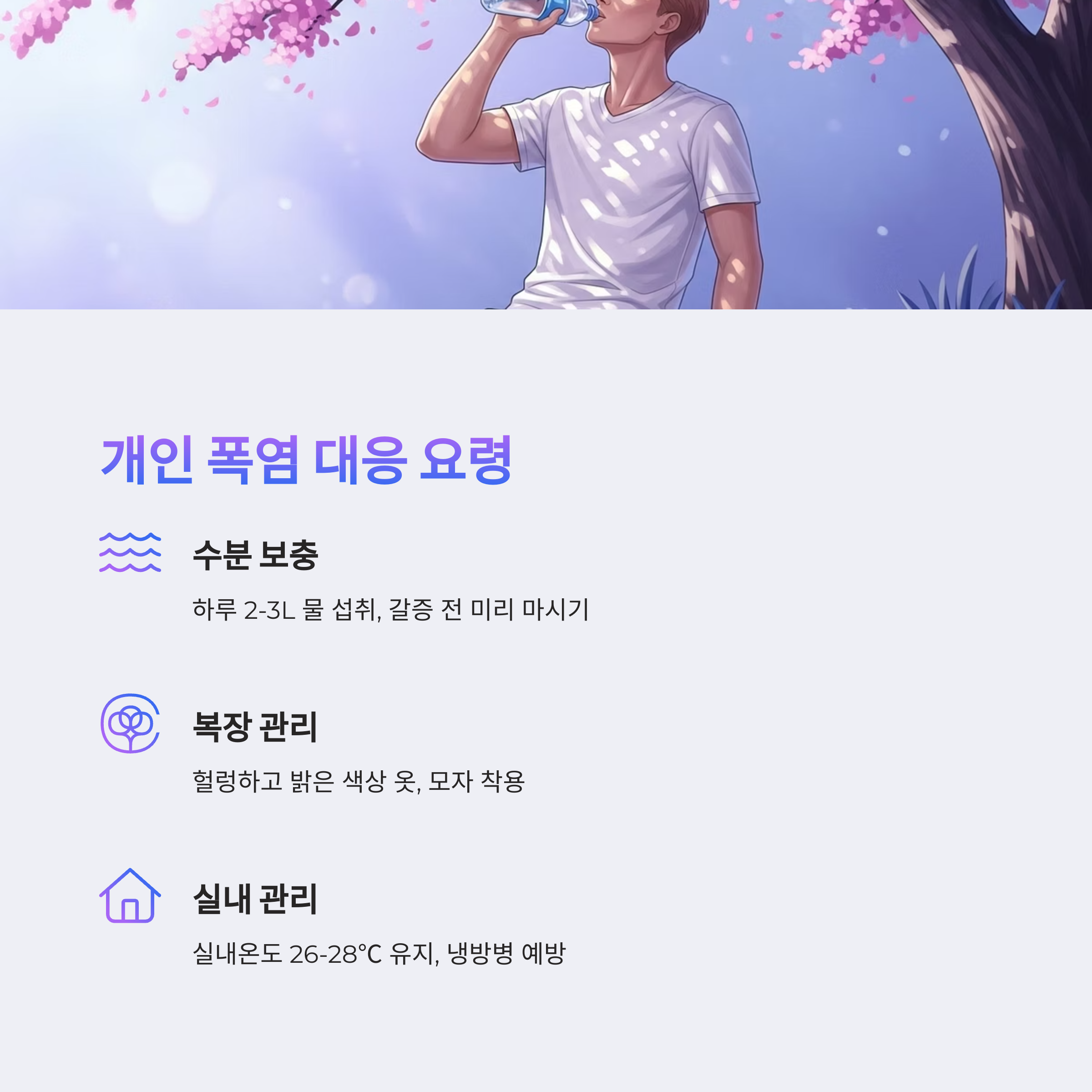 폭염주의보 발령 시 개인과 사회가 취해야 할 대응 요령을 단계별로 정리하였습니다. 적절한 대응으로 폭염 피해를 최소화할 수 있습니다.