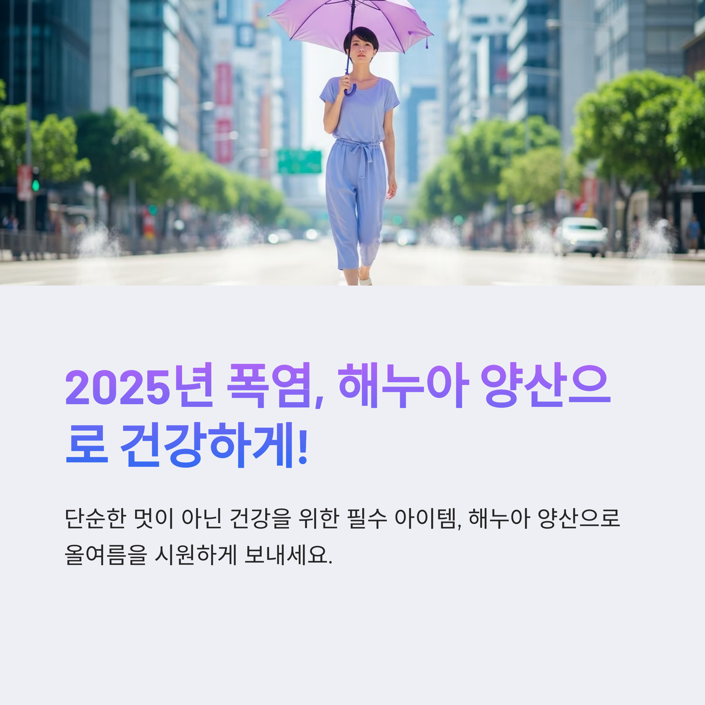 기상청이 예고한 2025년 역대급 폭염에 대비하여 해누아 양산 같은 기능성 제품의 필요성이 더욱 높아지고 있습니다. 단순한 멋이 아닌 건강을 위한 필수 아이템으로 인식하고 미리 준비하시기 바랍니다.