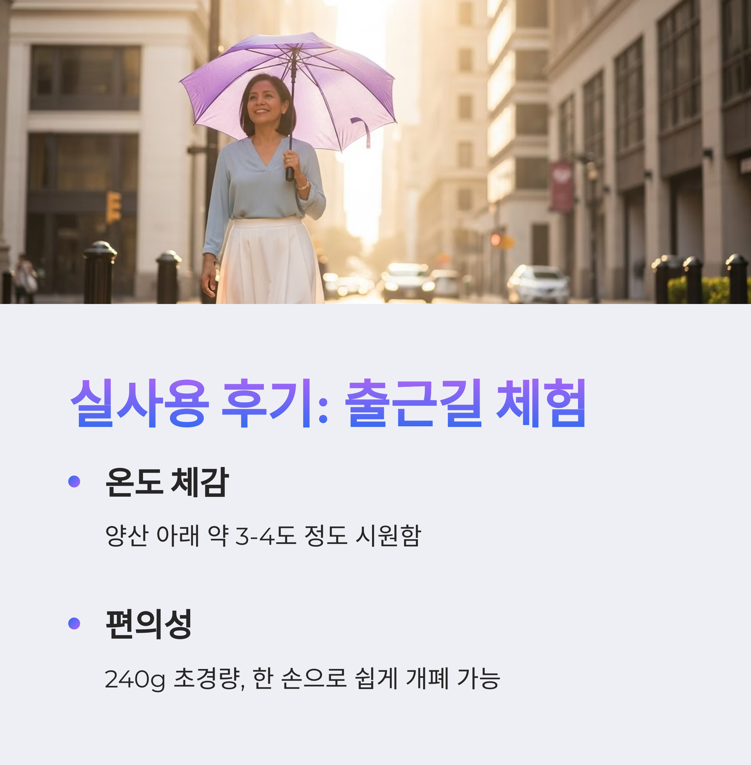 - 편의성: 양산, 우산 따로 챙길 필요 없음