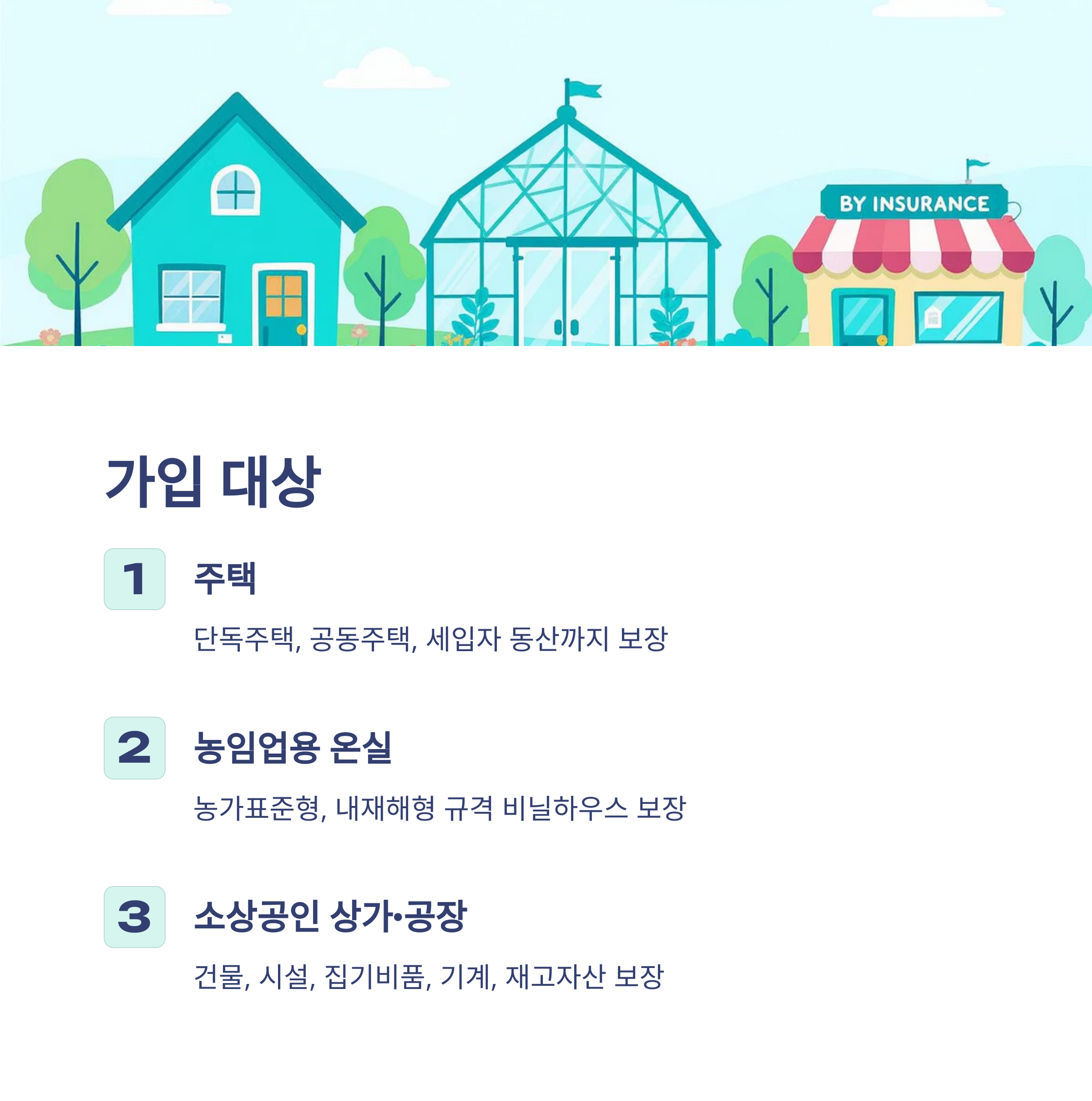 - 가입 대상 확대: 주택, 온실, 소상공인 상가·공장까지