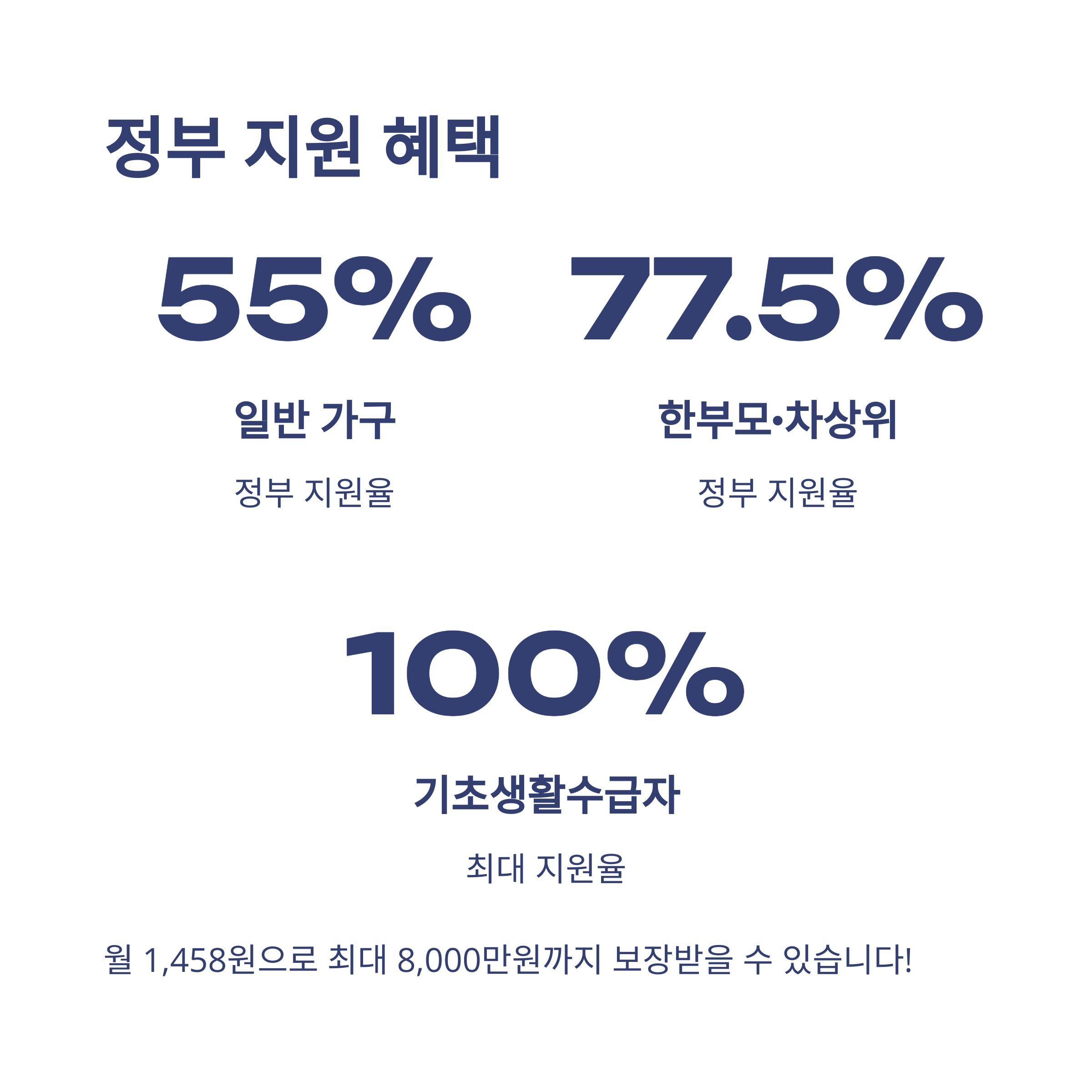 - 정부 지원 확대: 보험료의 55%~100%까지 정부 지원