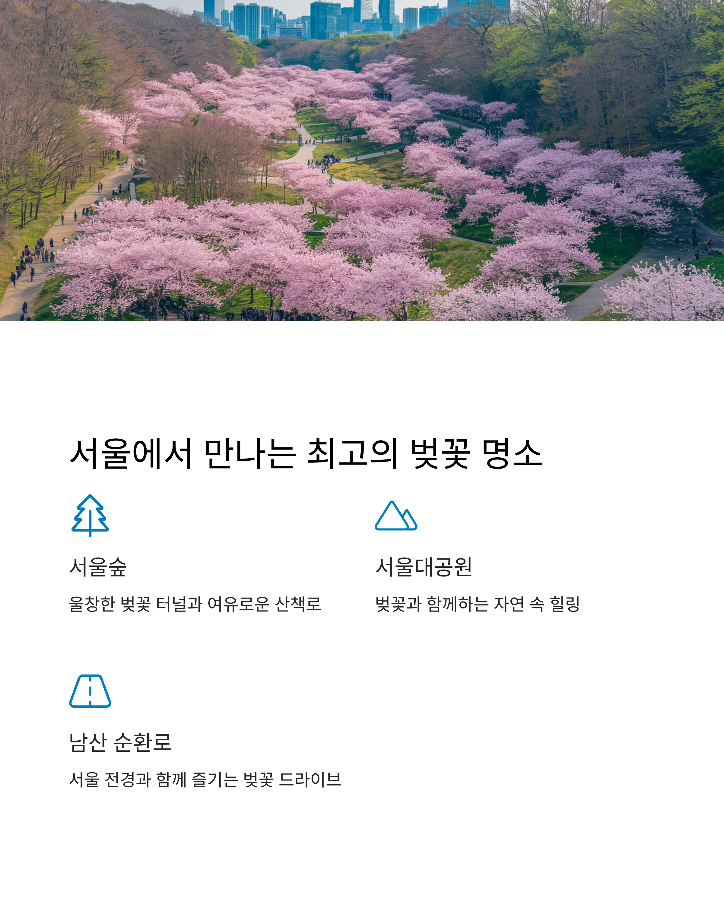 서울은 도심 속에서 벚꽃을 만끽할 수 있는 다양한 명소와 축제가 있습니다. 각 지역별 특징과 일정을 정리했습니다.