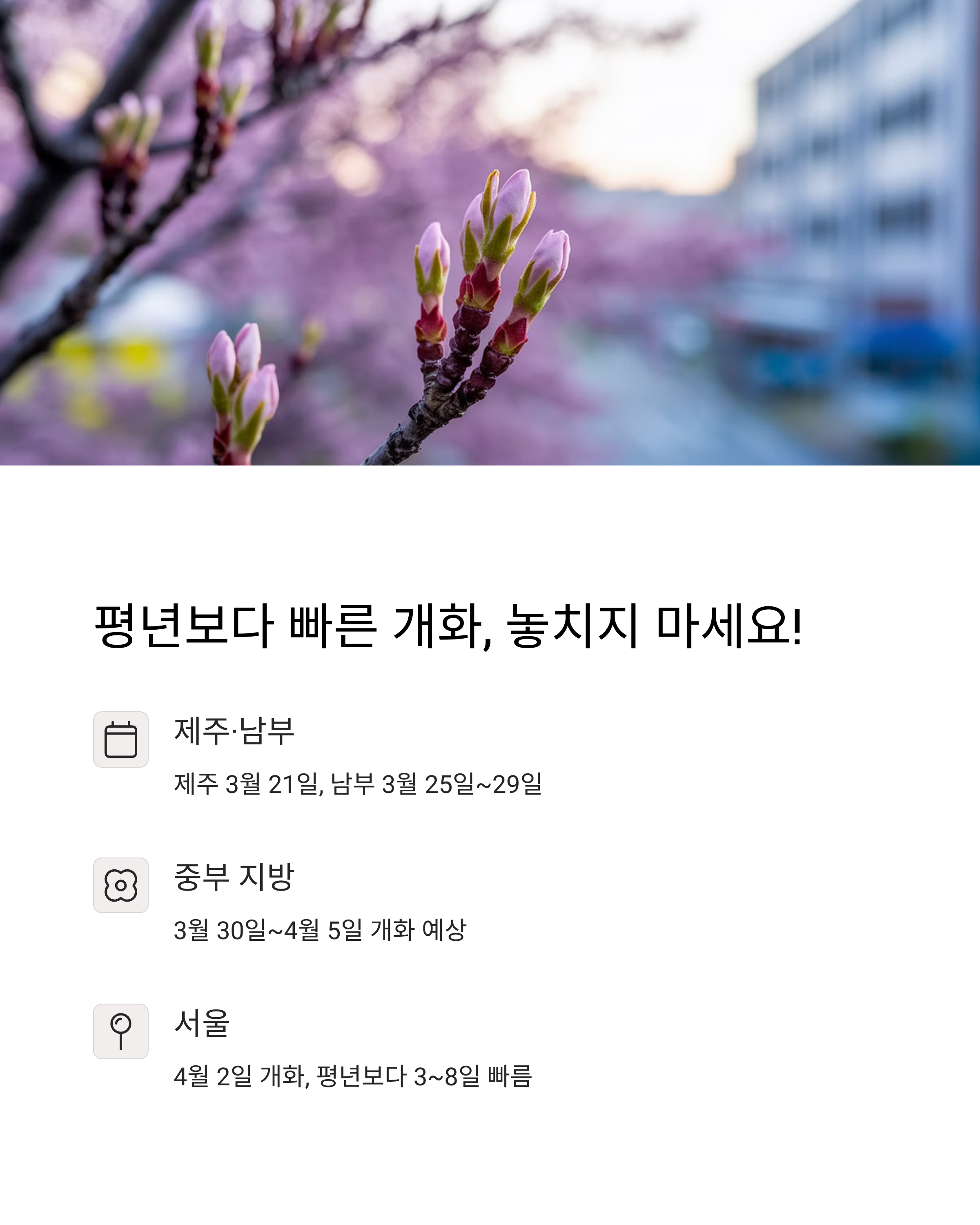 - 실시간 개화 상황 확인 (각 지자체 SNS, 기상청 발표)