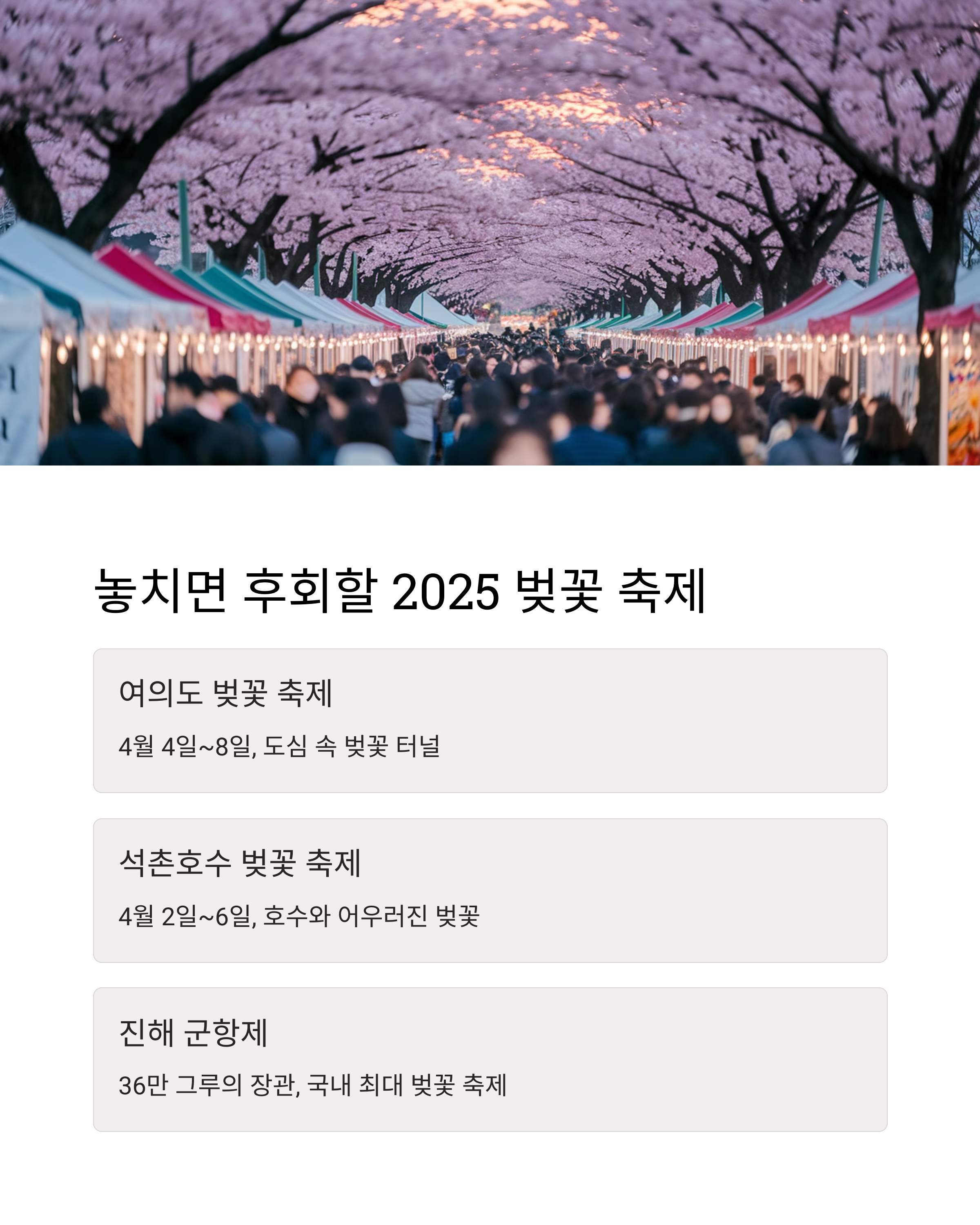 2025년 4월 벚꽃 축제를 100% 즐기기 위한 최종 체크리스트와 요약 정보를 제공합니다.