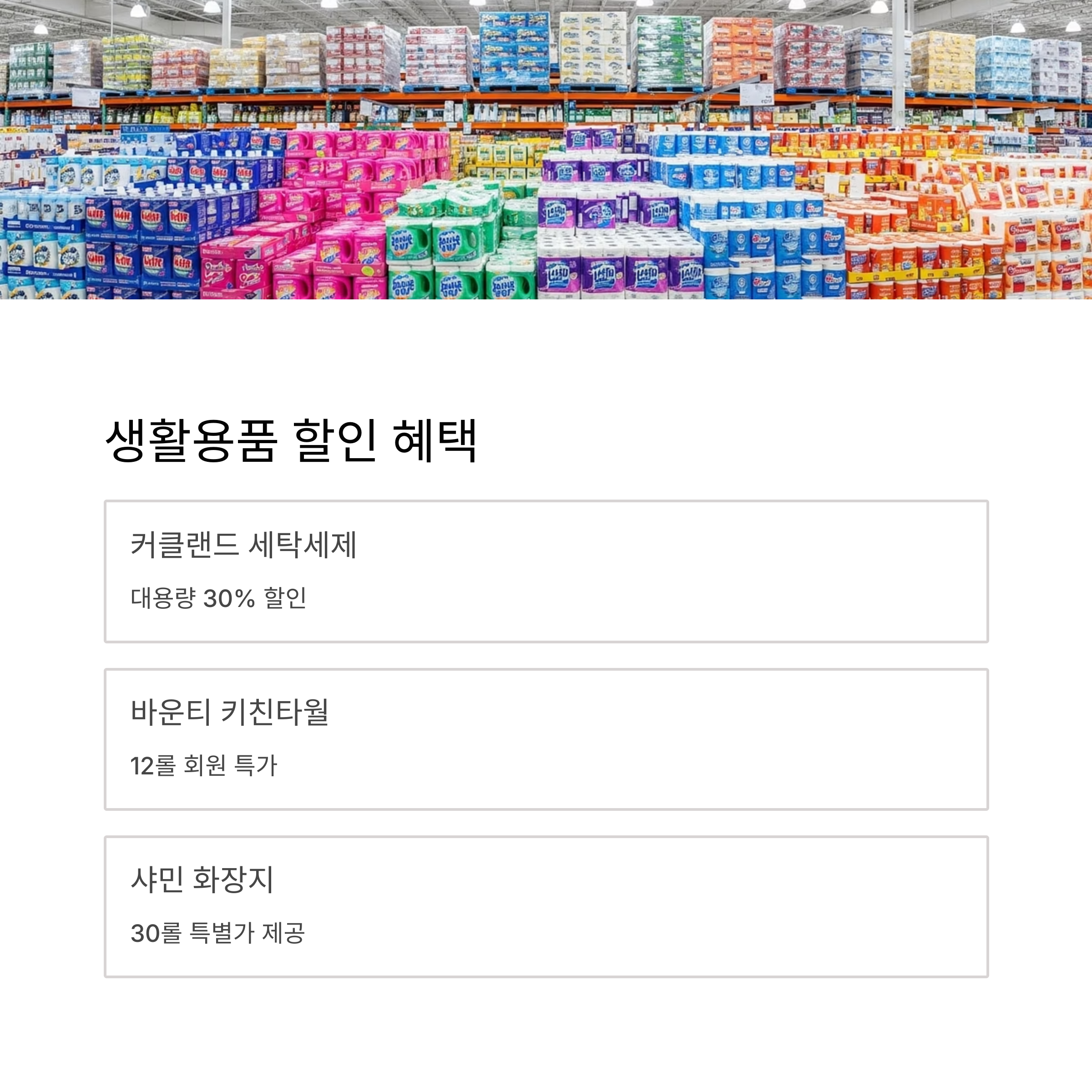 - 커클랜드 세탁세제 (대용량): 30% 할인