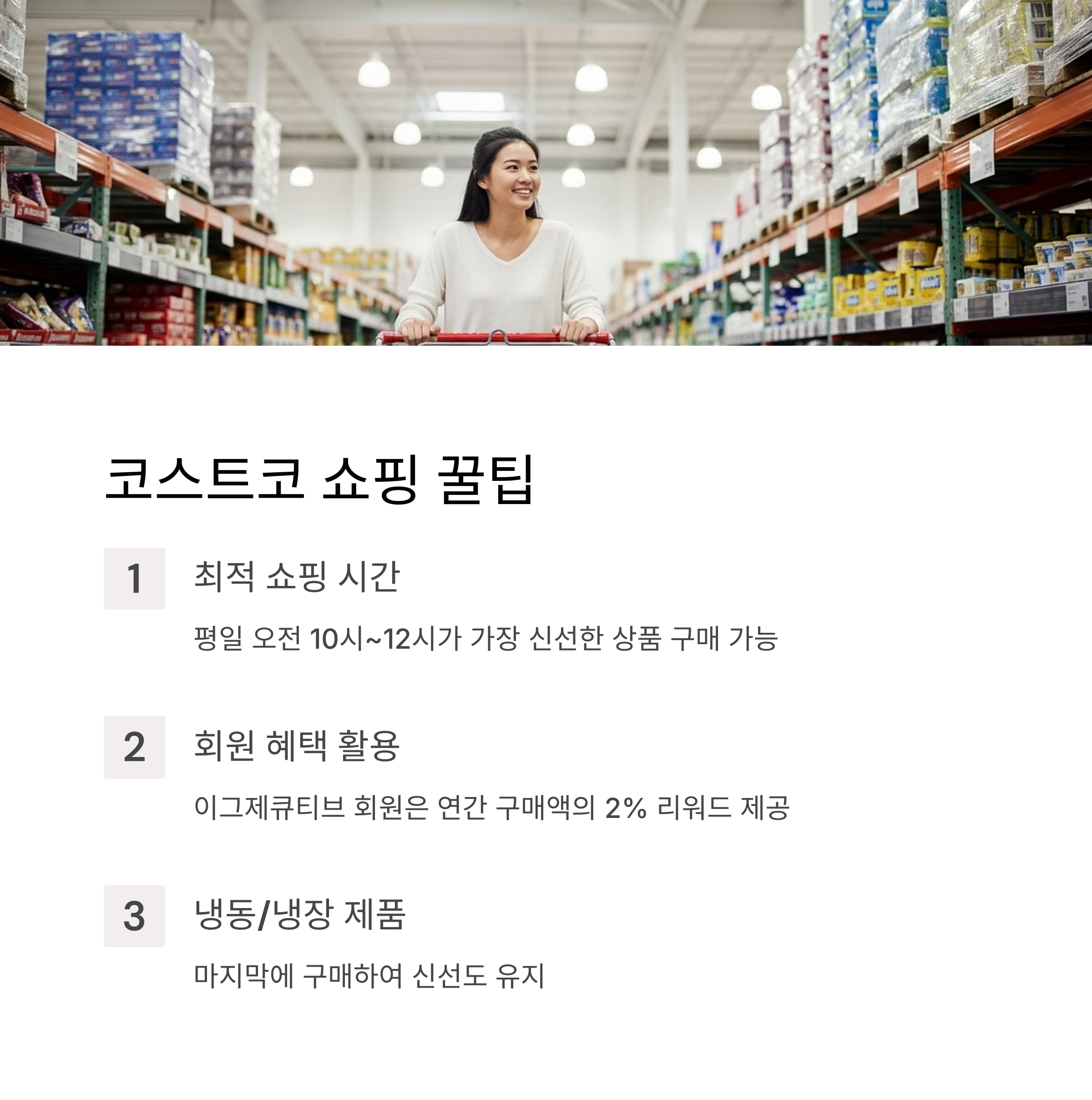 코스트코에서 더욱 알뜰하게 쇼핑하기 위한 실용적인 팁들을 소개합니다. 이 팁들을 활용하면 같은 예산으로도 더 많은 혜택을 받을 수 있습니다.