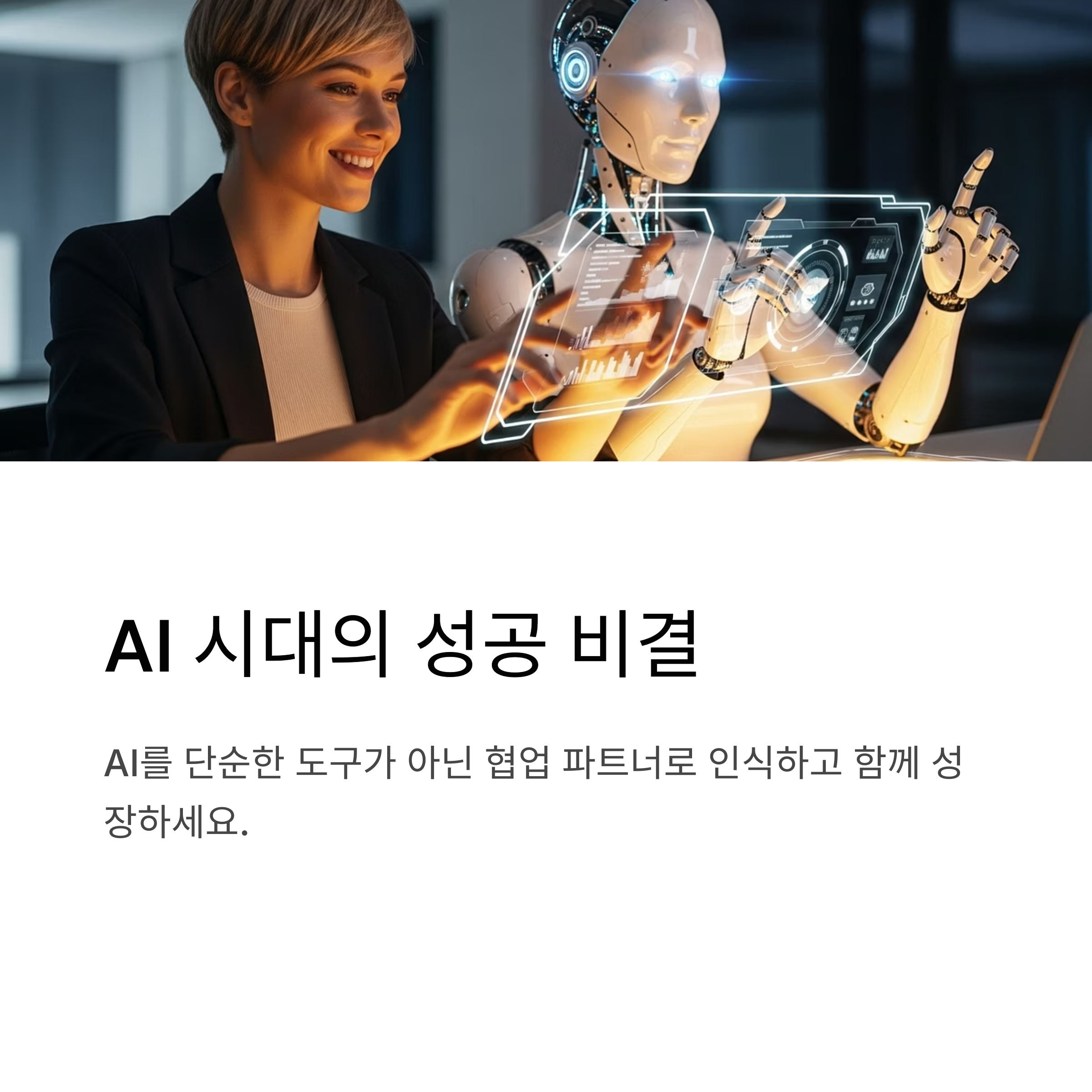 중요한 것은 AI를 단순한 도구로 보는 것이 아니라, 새로운 협업 파트너로 인식하고 함께 성장해나가는 마인드셋을 갖는 것입니다. 지속적인 학습과 실험을 통해 AI의 가능성을 최대한 활용하고, 변화하는 디지털 환경에 능동적으로 적응해나가시기 바랍니다.