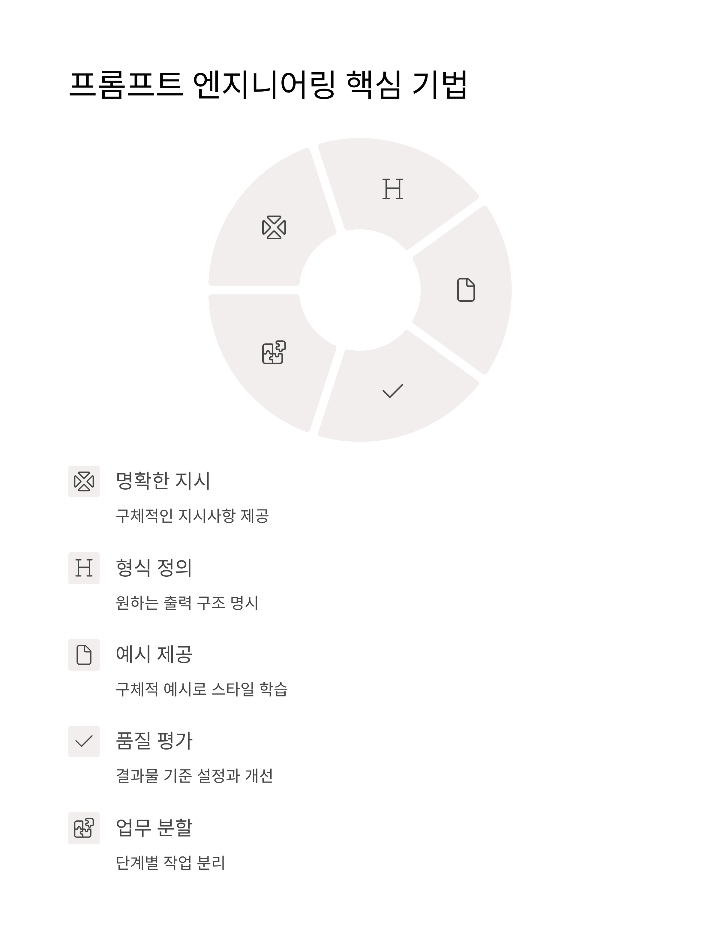 구체적이고 명확한 지시사항을 제공하여 AI가 정확히 이해할 수 있도록 합니다.