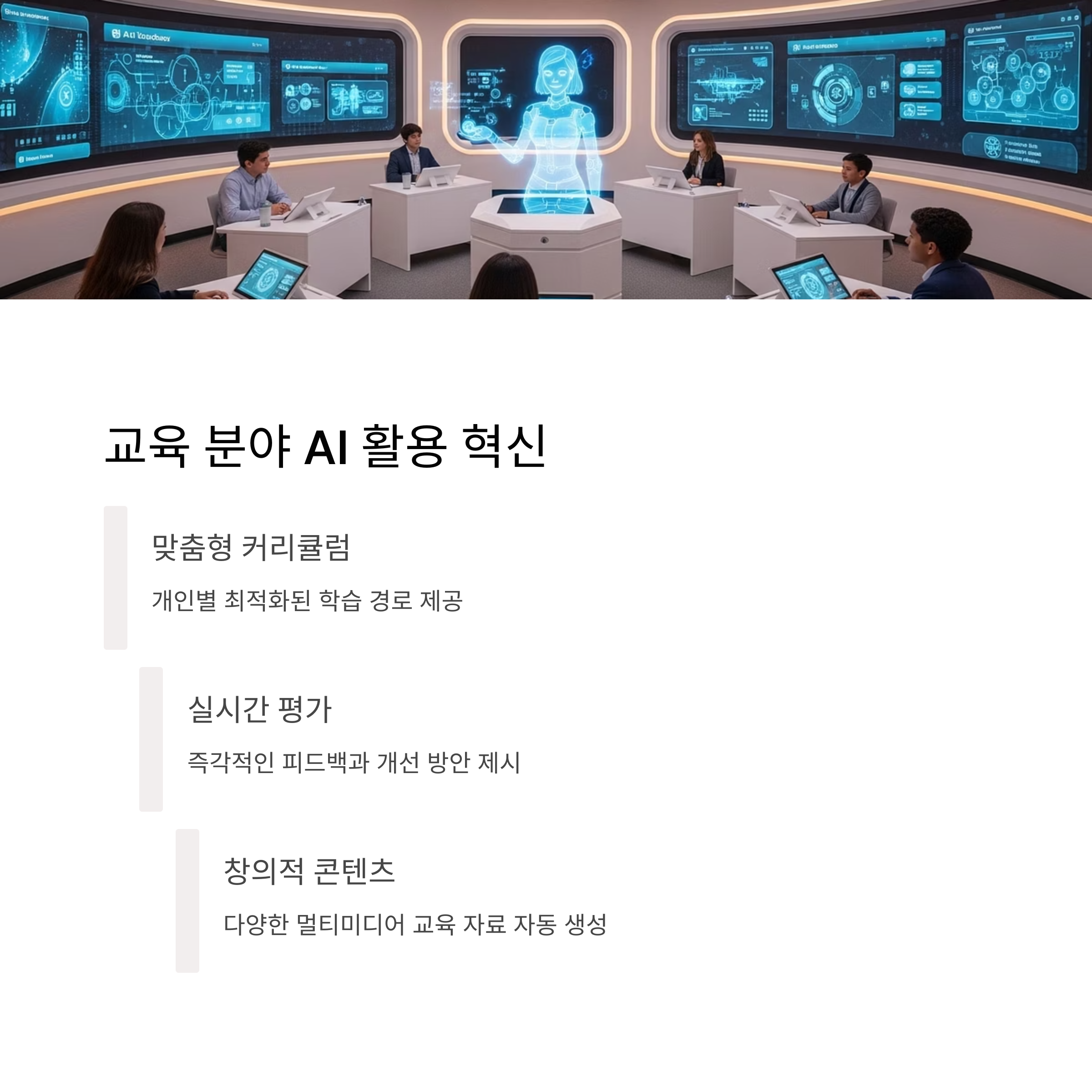 2025년 교육 분야는 AI 기술의 도입으로 완전히 새로운 패러다임을 맞이하고 있습니다. 개인 맞춤형 학습, 실시간 피드백, 창의적 교육 콘텐츠 생성 등 모든 영역에서 혁신적인 변화가 일어나고 있습니다.