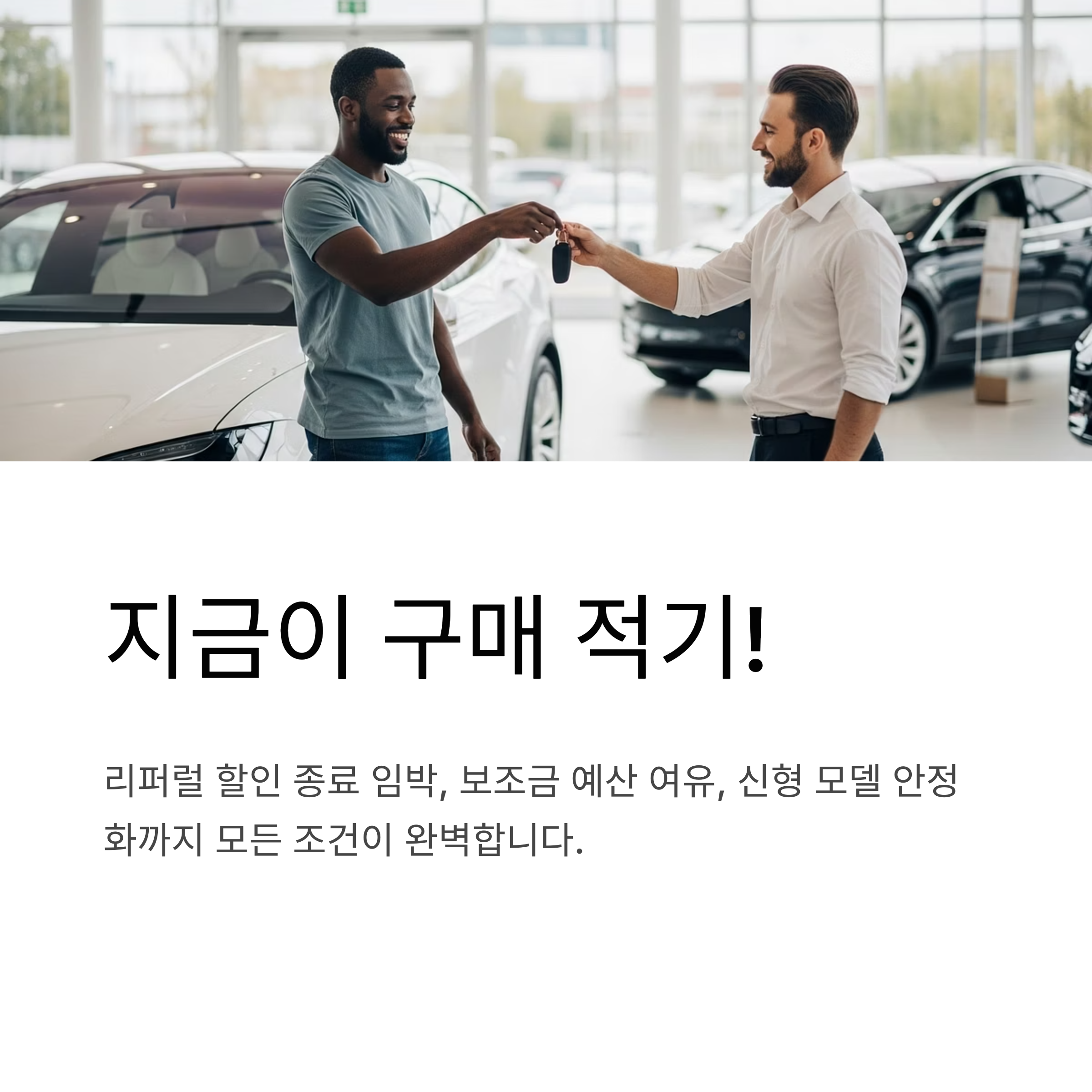 전기차 시장은 빠르게 변화하고 있으며, 정부 정책과 제조사 전략에 따라 가격과 혜택이 수시로 달라질 수 있습니다. 현재 제공되는 프로모션과 보조금 혜택을 종합적으로 고려할 때, 테슬라 구매를 계획하고 계시다면 지금이 좋은 타이밍으로 판단됩니다.