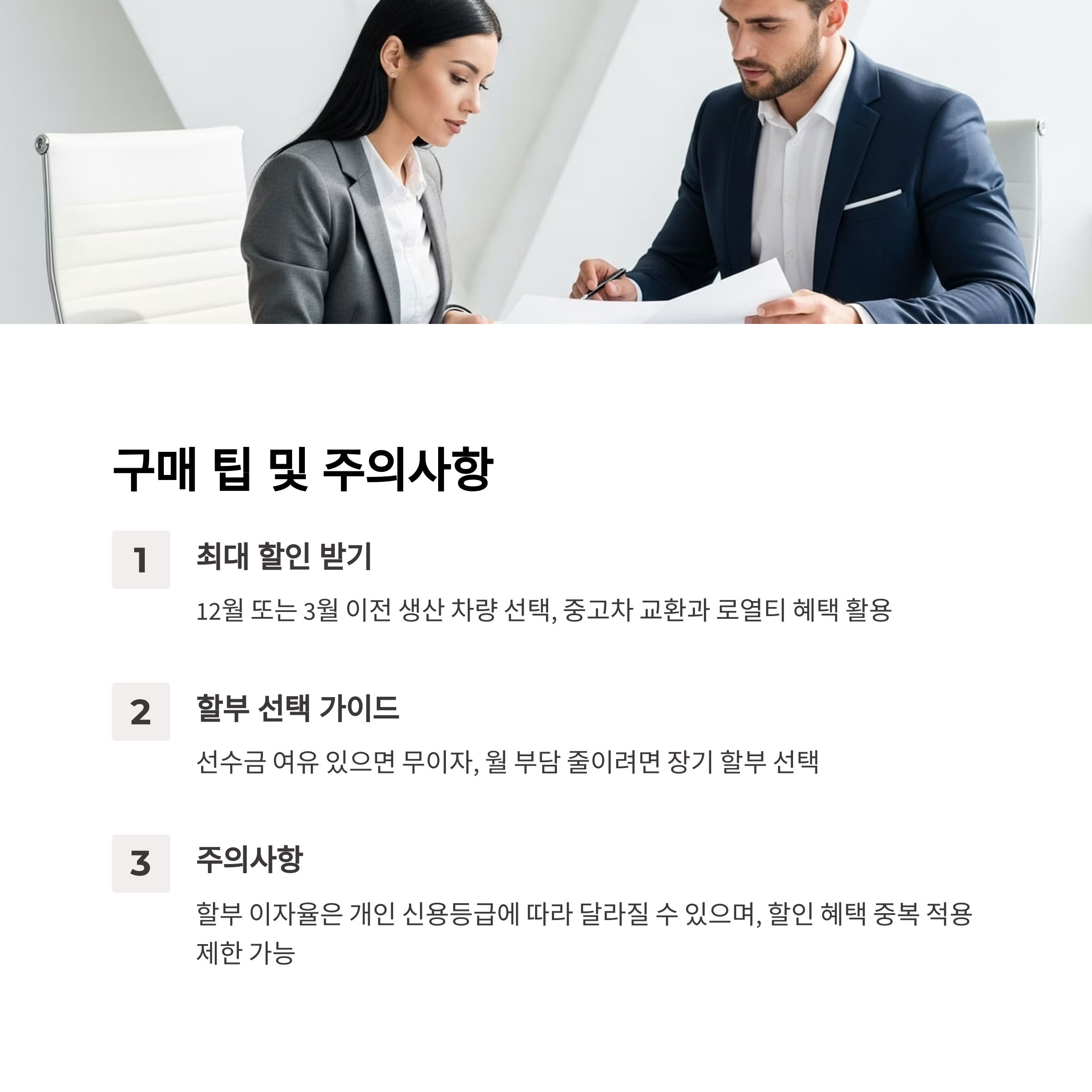 - 금융 조건 비교: 무이자 vs 장기할부 중 본인 상황에 맞는 선택