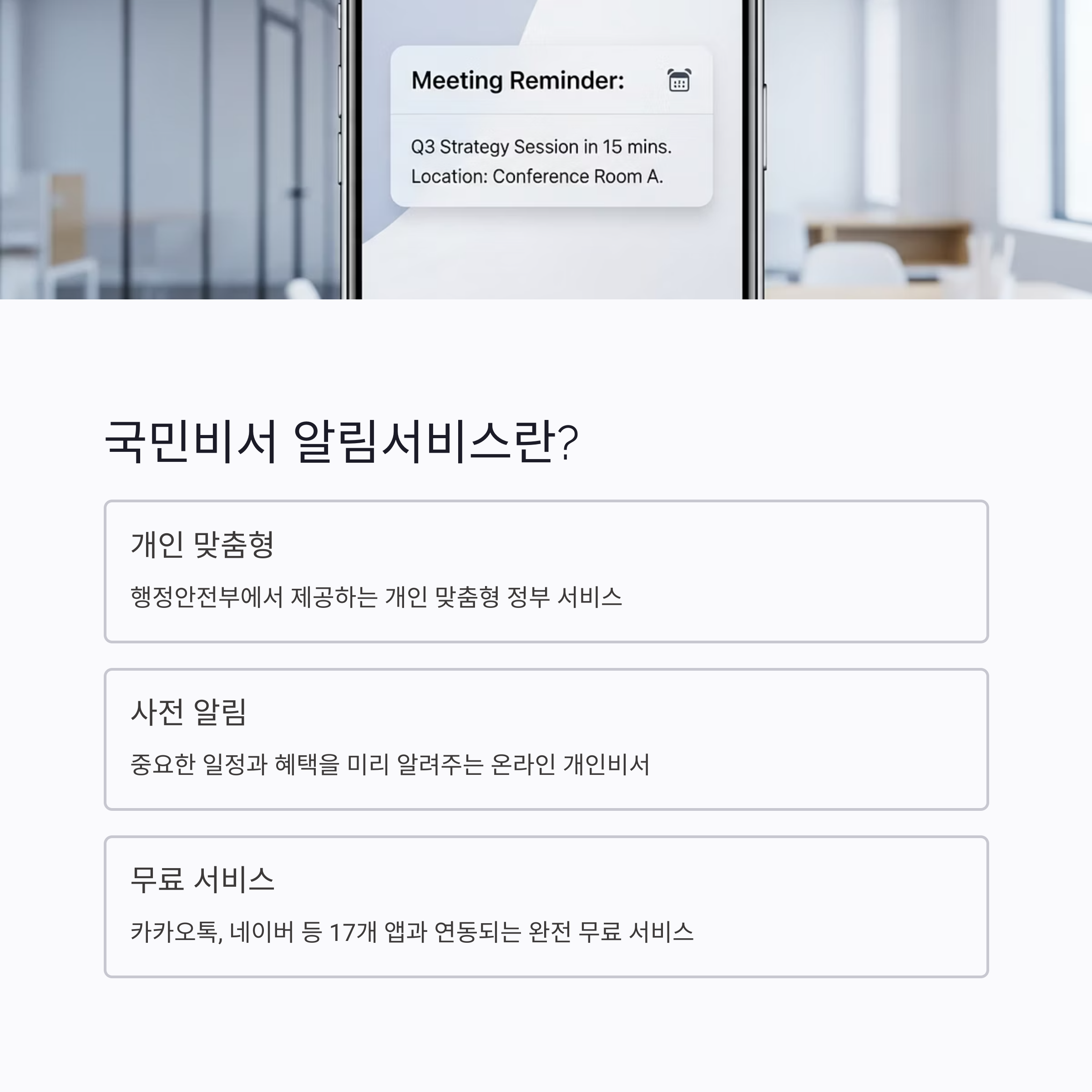 국민비서 알림서비스는 복잡한 정부 서비스를 간편하게 이용할 수 있게 해주는 필수 도구입니다. 특히 2025년 새롭게 추가된 민생회복 소비쿠폰 알림서비스는 개인별 맞춤 정보를 제공하여 더욱 실용적인 서비스로 진화했습니다.
