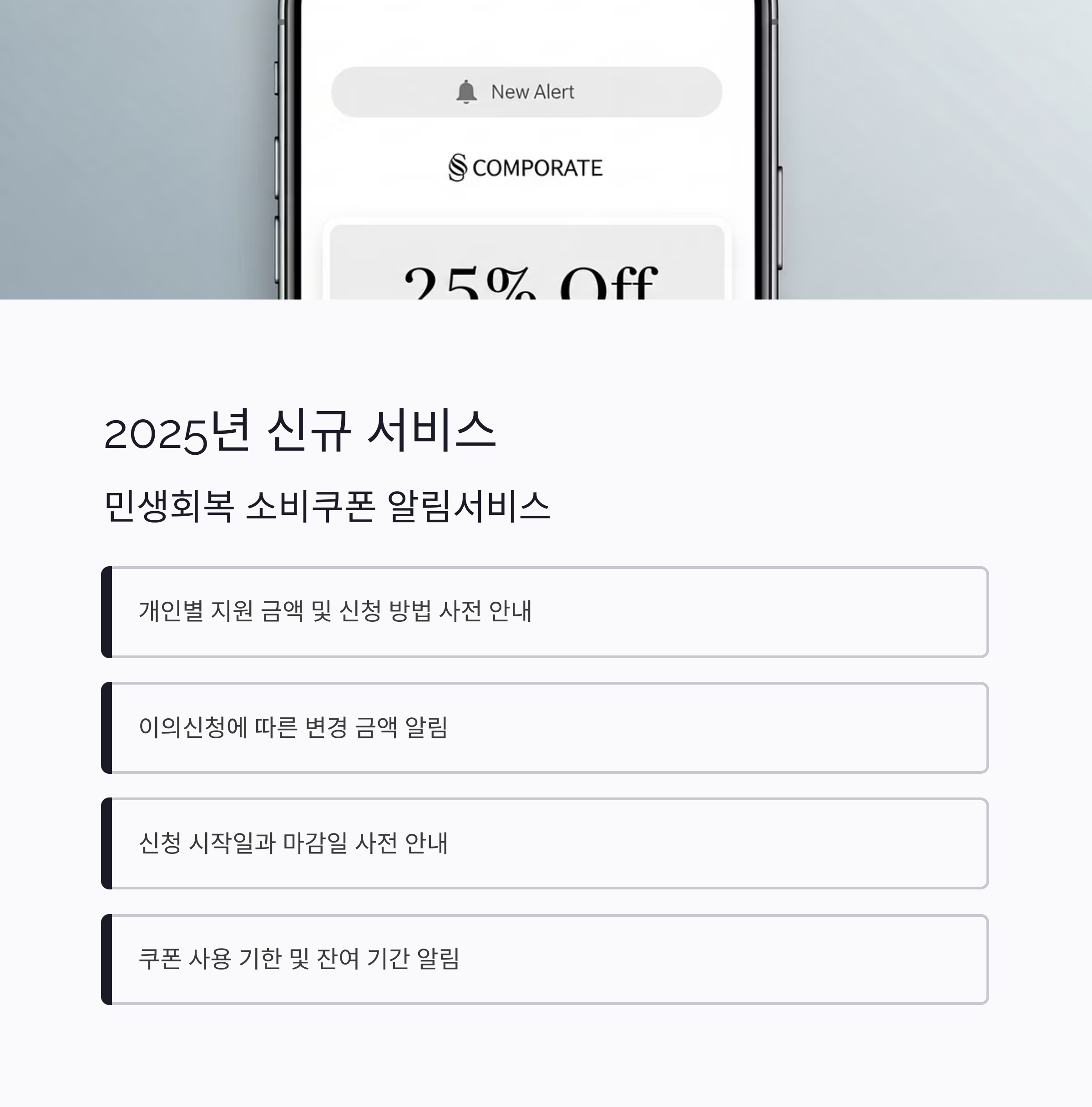 특히 2025년 새로 도입된 민생회복 소비쿠폰 알림서비스는 개인별 맞춤 정보를 제공하므로, 알림을 받는 즉시 신청 준비를 하는 것이 중요합니다.