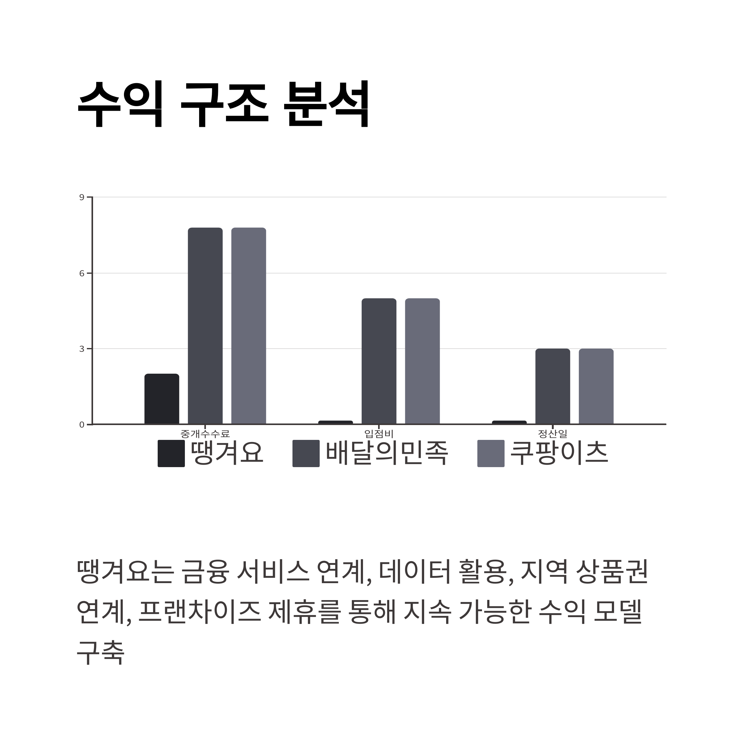 | 구분 | 땡겨요 | 배달의민족 | 쿠팡이츠 |