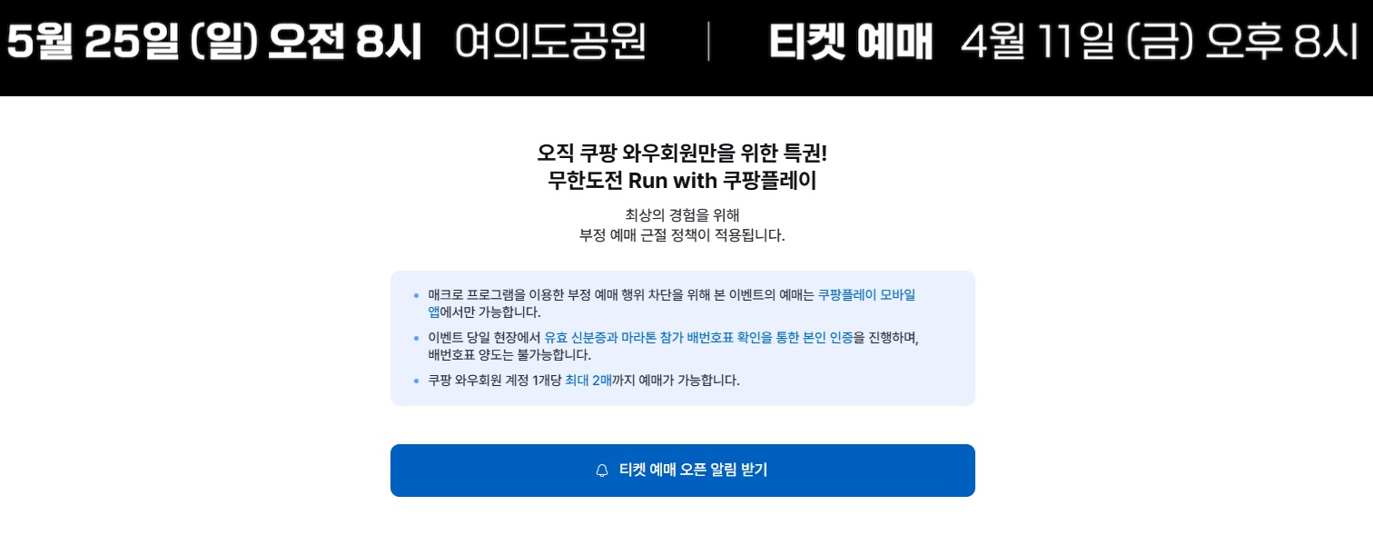 - 이벤트명 : 무한도전 Run with 쿠팡플레이