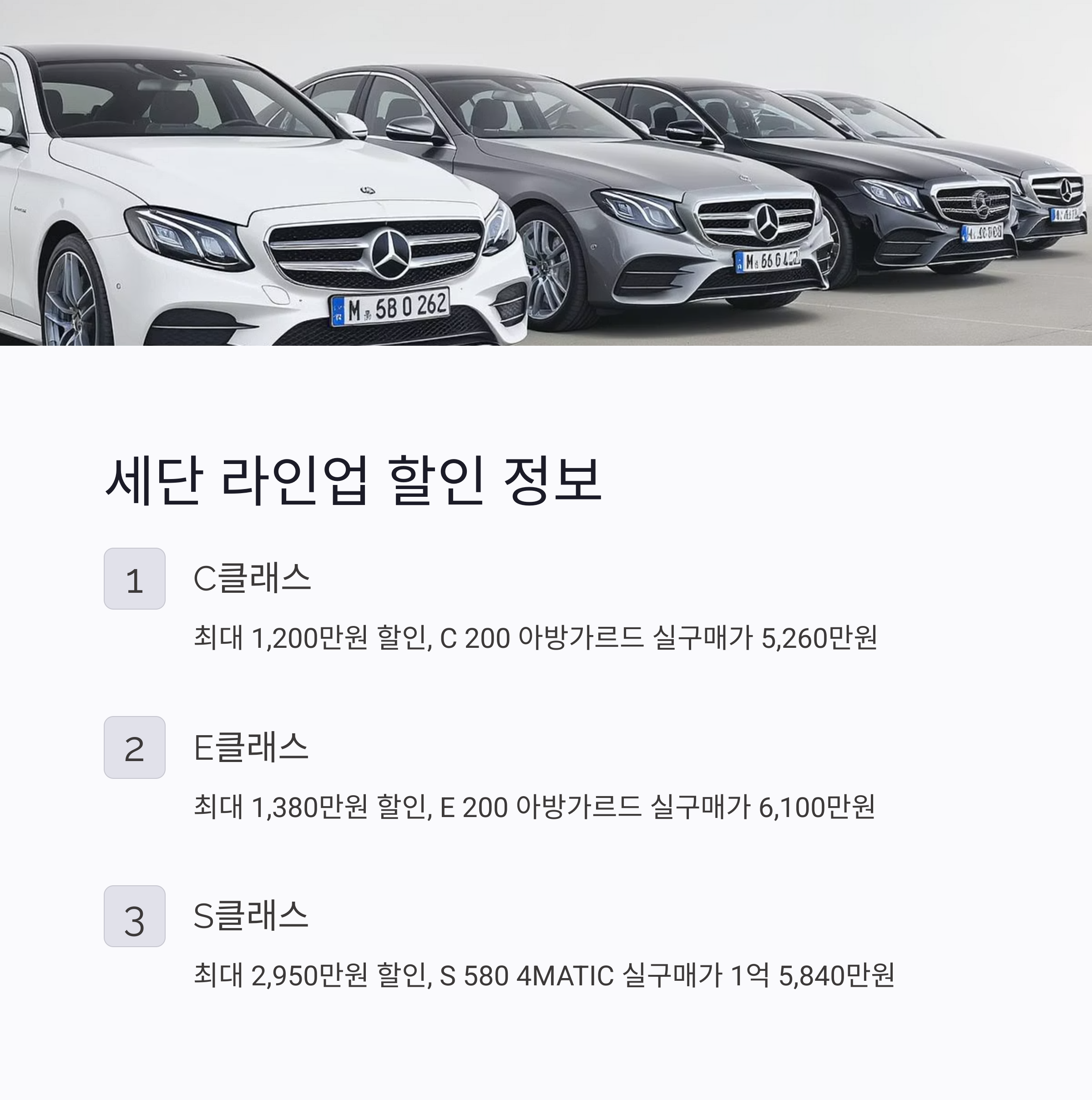 정확한 할인 혜택과 조건은 메르세데스-벤츠 공식 딜러를 통해 직접 확인하시기 바랍니다.
