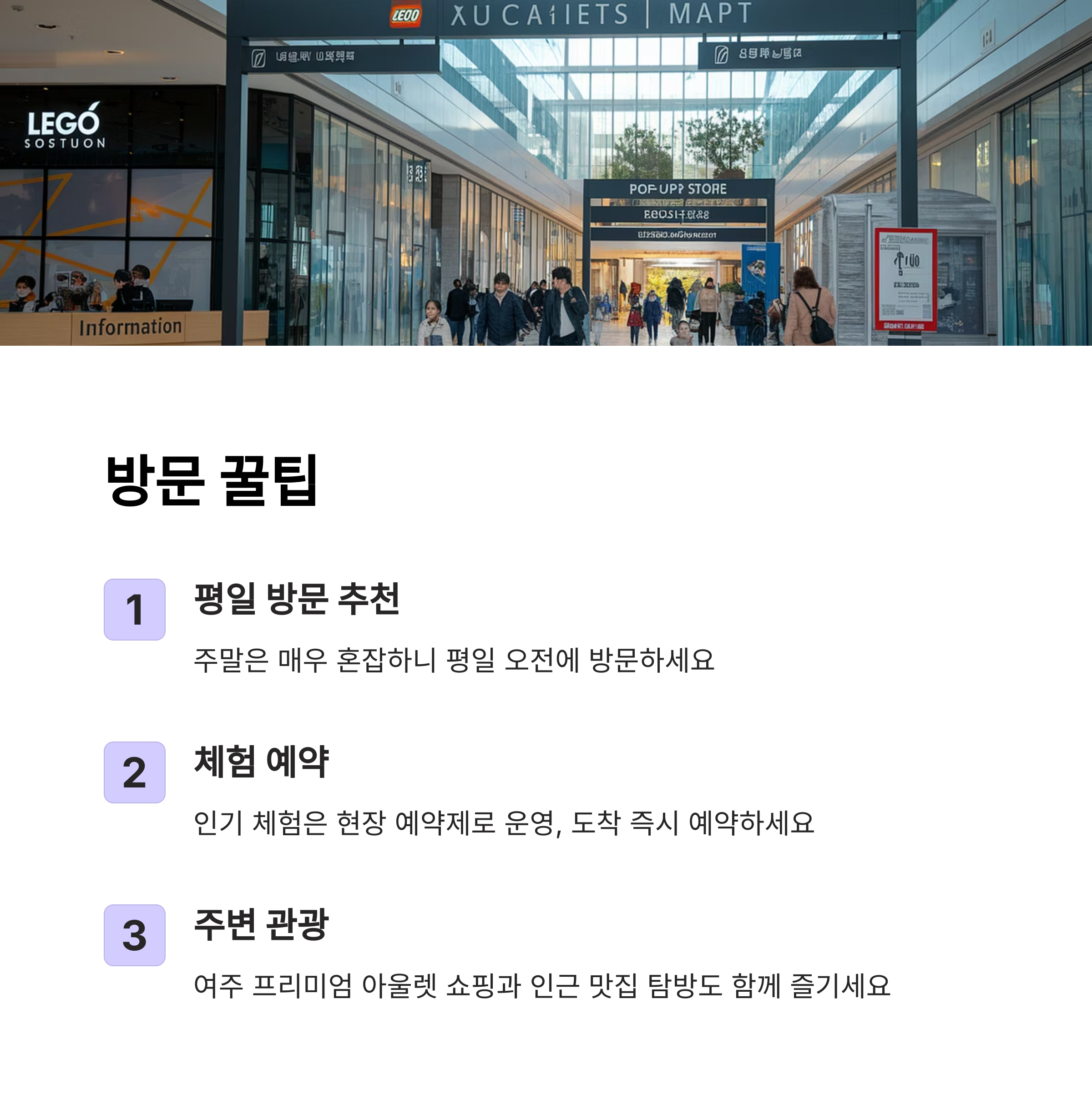 레고 F1 팝업스토어와 여주 프리미엄 아울렛을 더욱 알차게 즐기기 위한 꿀팁과 주의사항을 소개합니다.