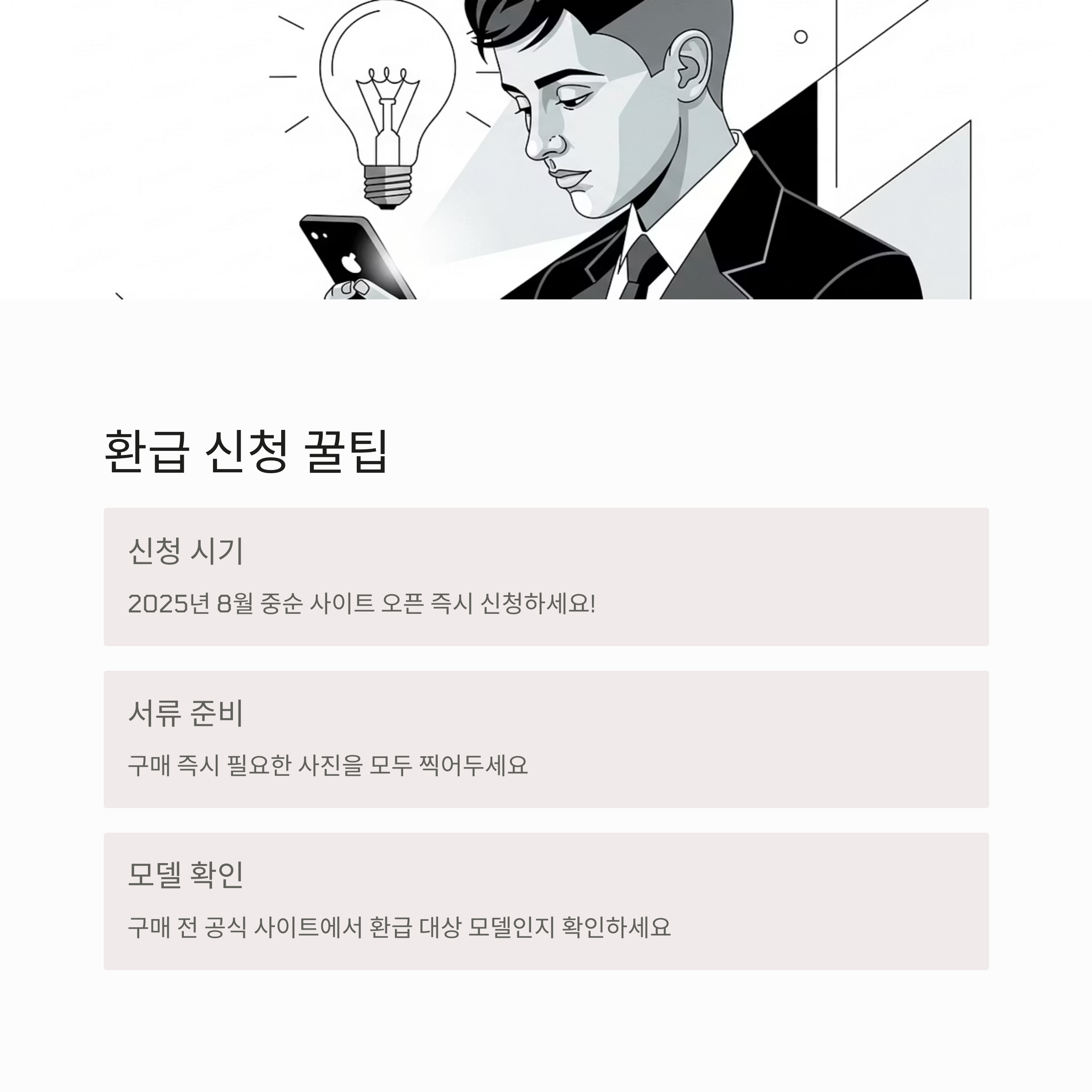 - 예산 소진 시 조기 마감: 가장 중요한 원칙입니다. 정부 예산이 모두 소진되면 구매 기간 내에 샀더라도 환급받을 수 없습니다. 구매하셨다면 신청이 열리는 즉시 접수하는 것이 생명입니다.