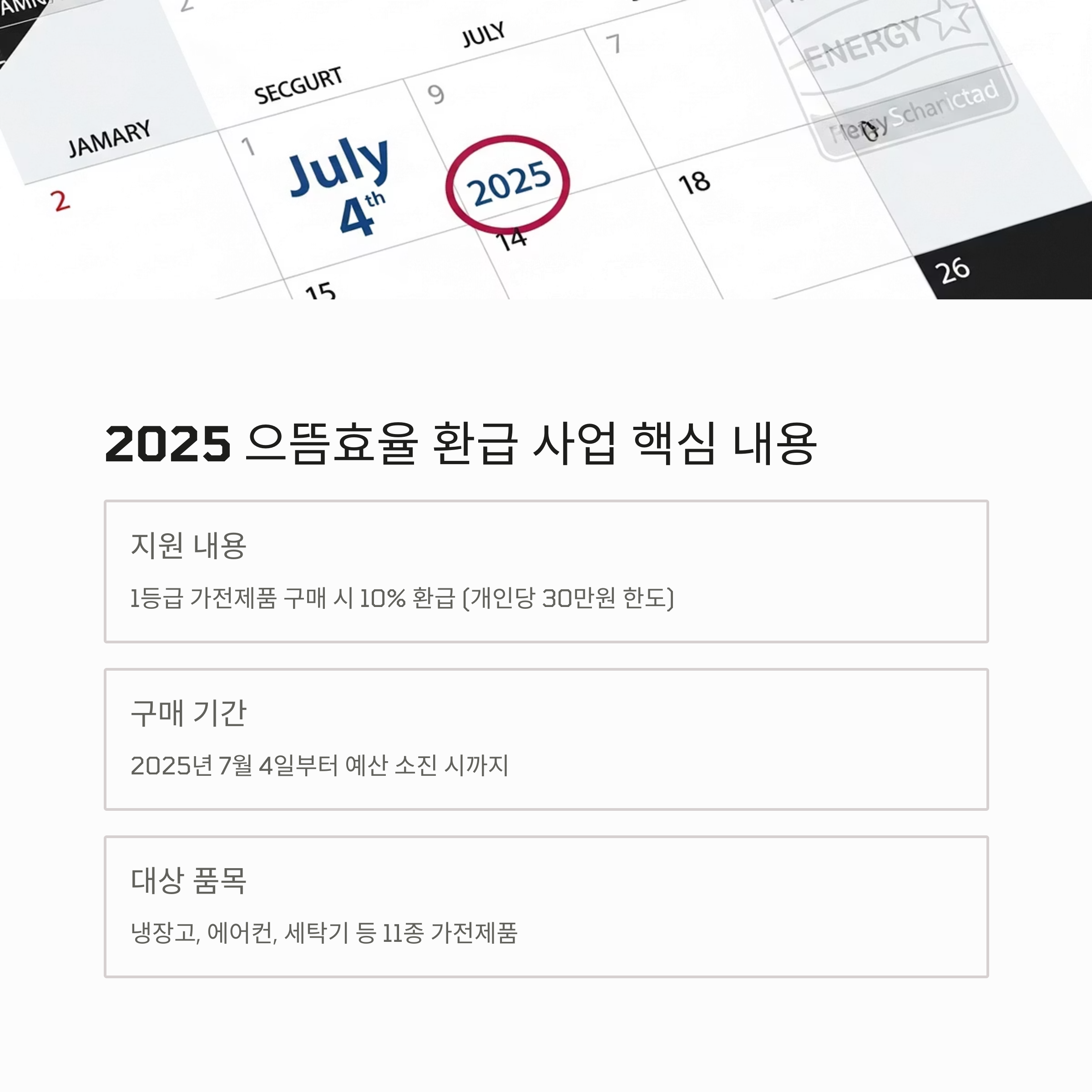 - '설치' 기준이 아닌 '구매' 기준: 배송이나 설치가 늦어지더라도, 영수증에 찍힌 '구매 날짜'가 2025년 7월 4일 이후라면 모두 환급 대상입니다.