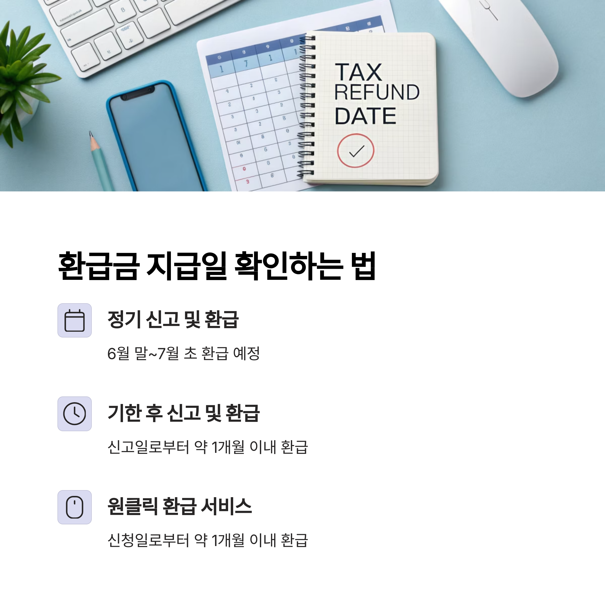 • 정기 신고 및 환급: 6월 말~7월 초 환급 예정