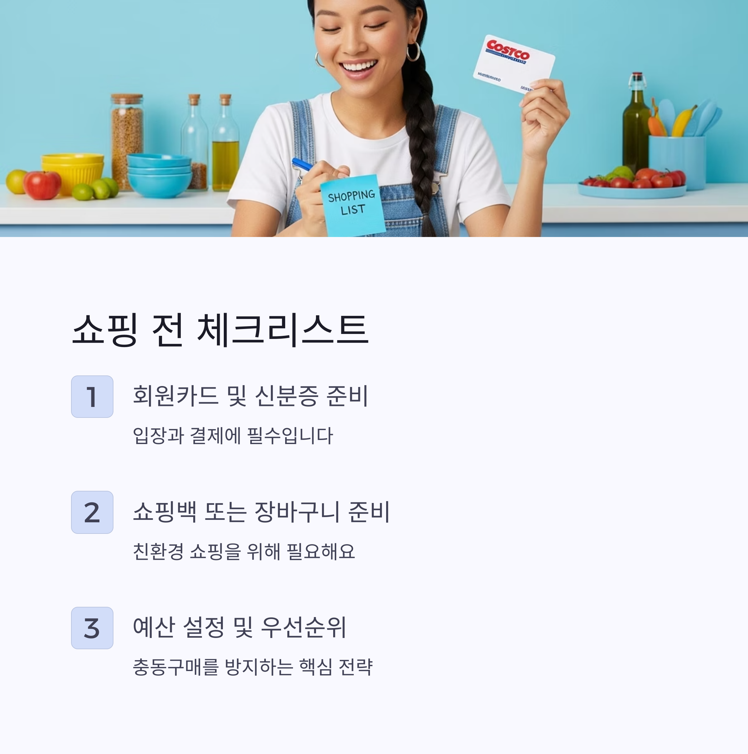 효율적인 코스트코 쇼핑을 위한 완벽한 체크리스트를 준비했습니다. 쇼핑 전, 쇼핑 중, 쇼핑 후로 나누어 단계별로 확인하며 알찬 쇼핑을 완성하세요.
