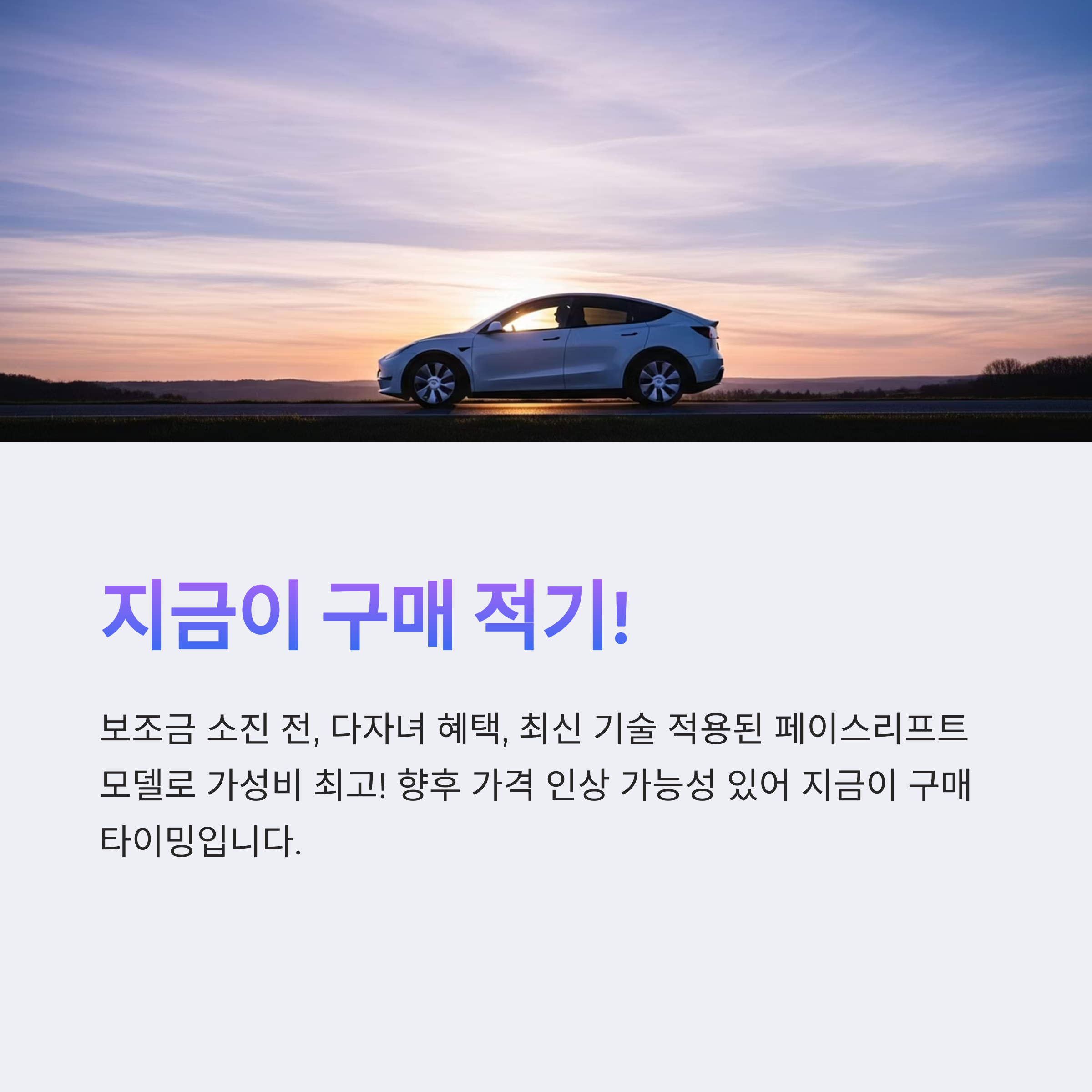 - 보조금 혜택: 2025년 보조금 예산 소진 전 구매 필수