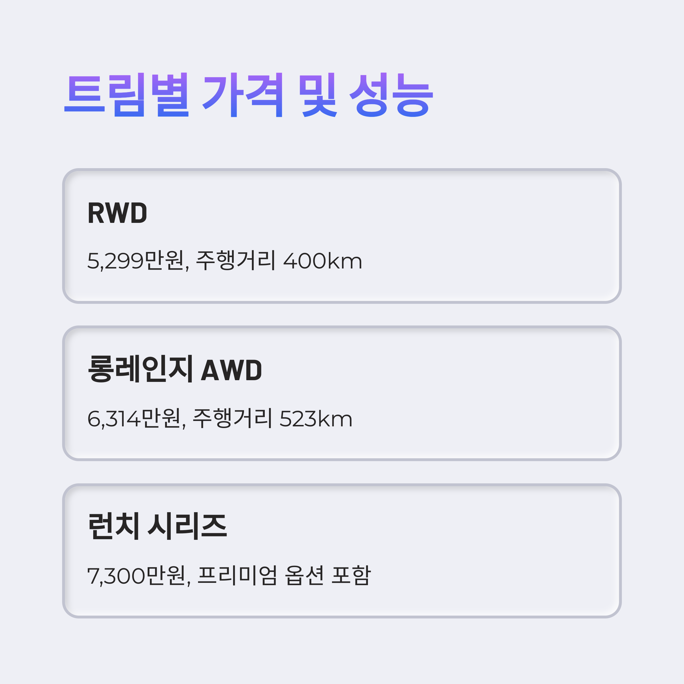 | 구분 | RWD | 롱레인지 AWD |