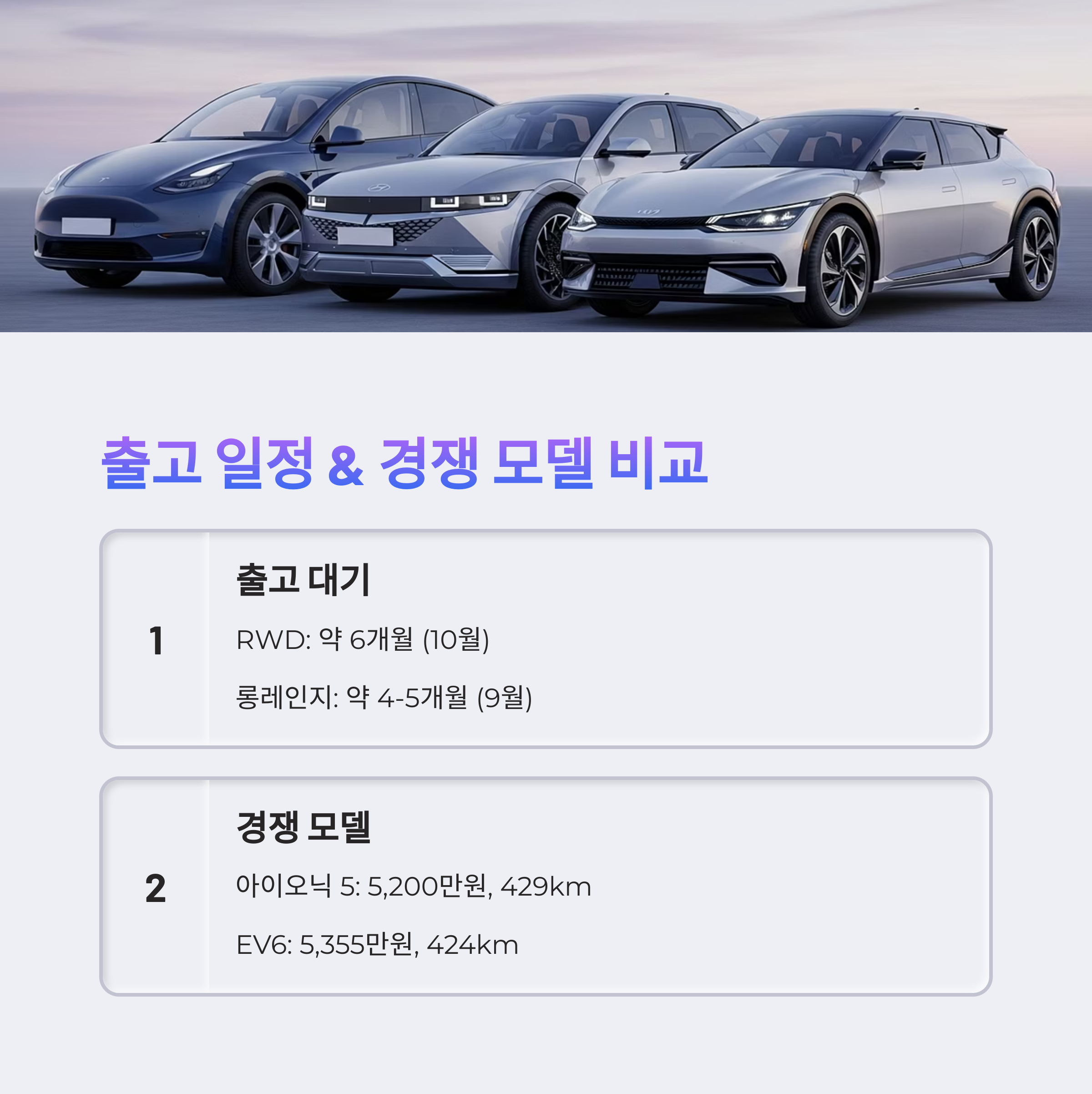 - 롱레인지 AWD: 약 4-5개월 대기 (2025년 9월 출고 예정)