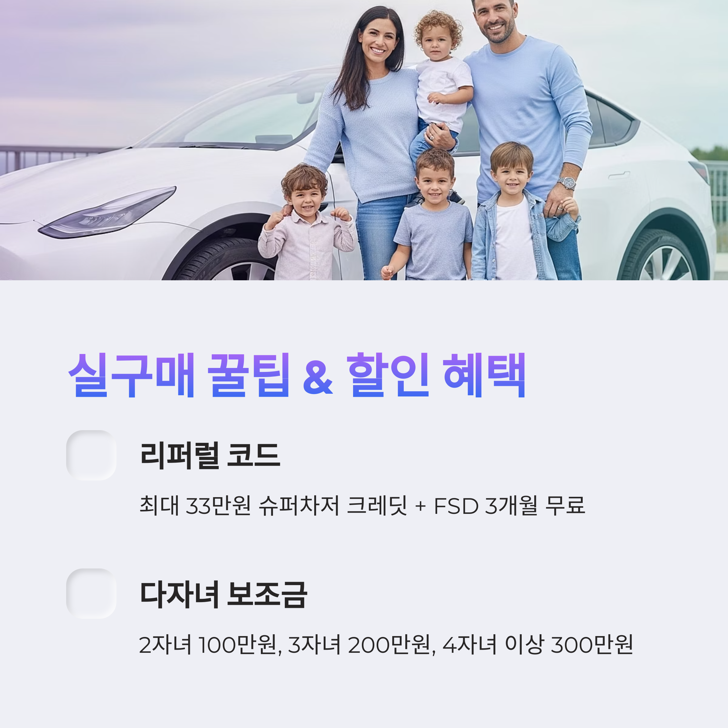 - 다자녀 가구: 추가 보조금으로 더욱 저렴한 구매
