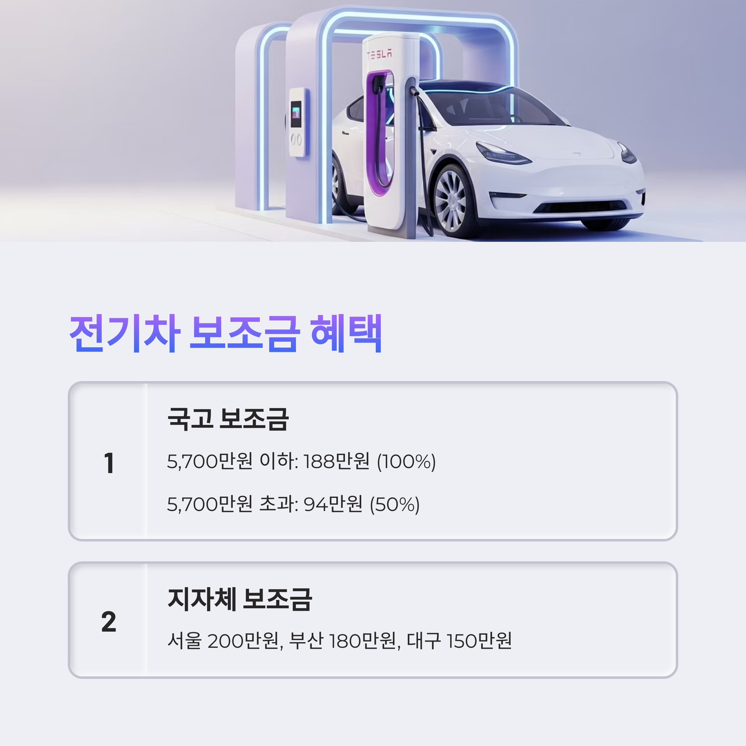 2025년 전기차 보조금은 차량 가격에 따라 차등 지원됩니다. 테슬라 모델 Y 주니퍼의 보조금 지원 현황은 다음과 같습니다:
