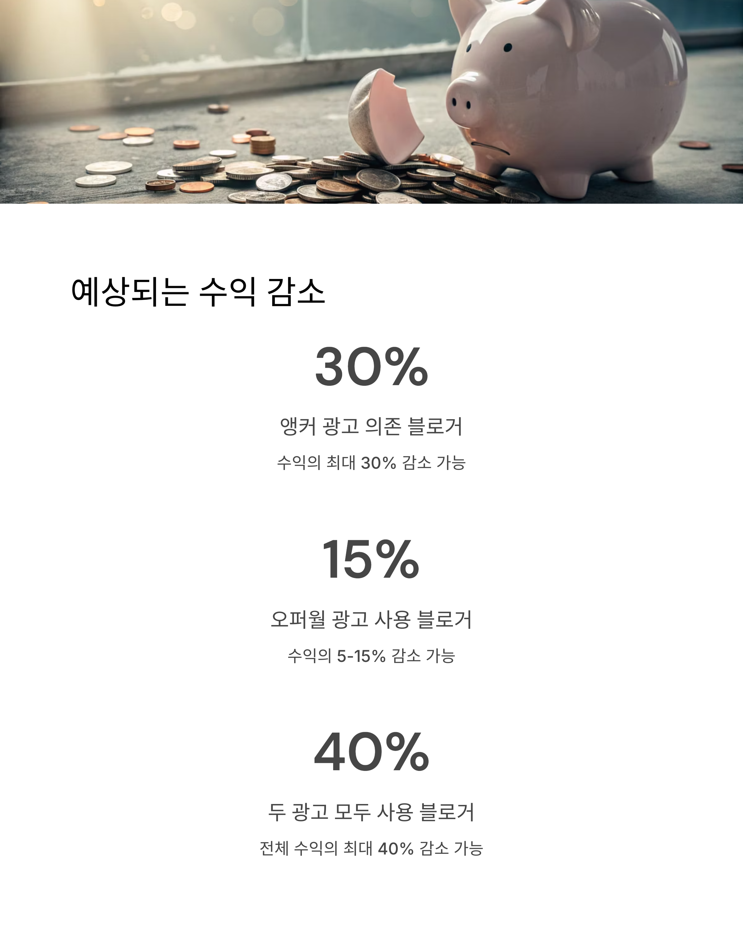 - 두 광고 유형 모두 활용하던 블로거: 전체 수익의 15-40%까지 감소 가능