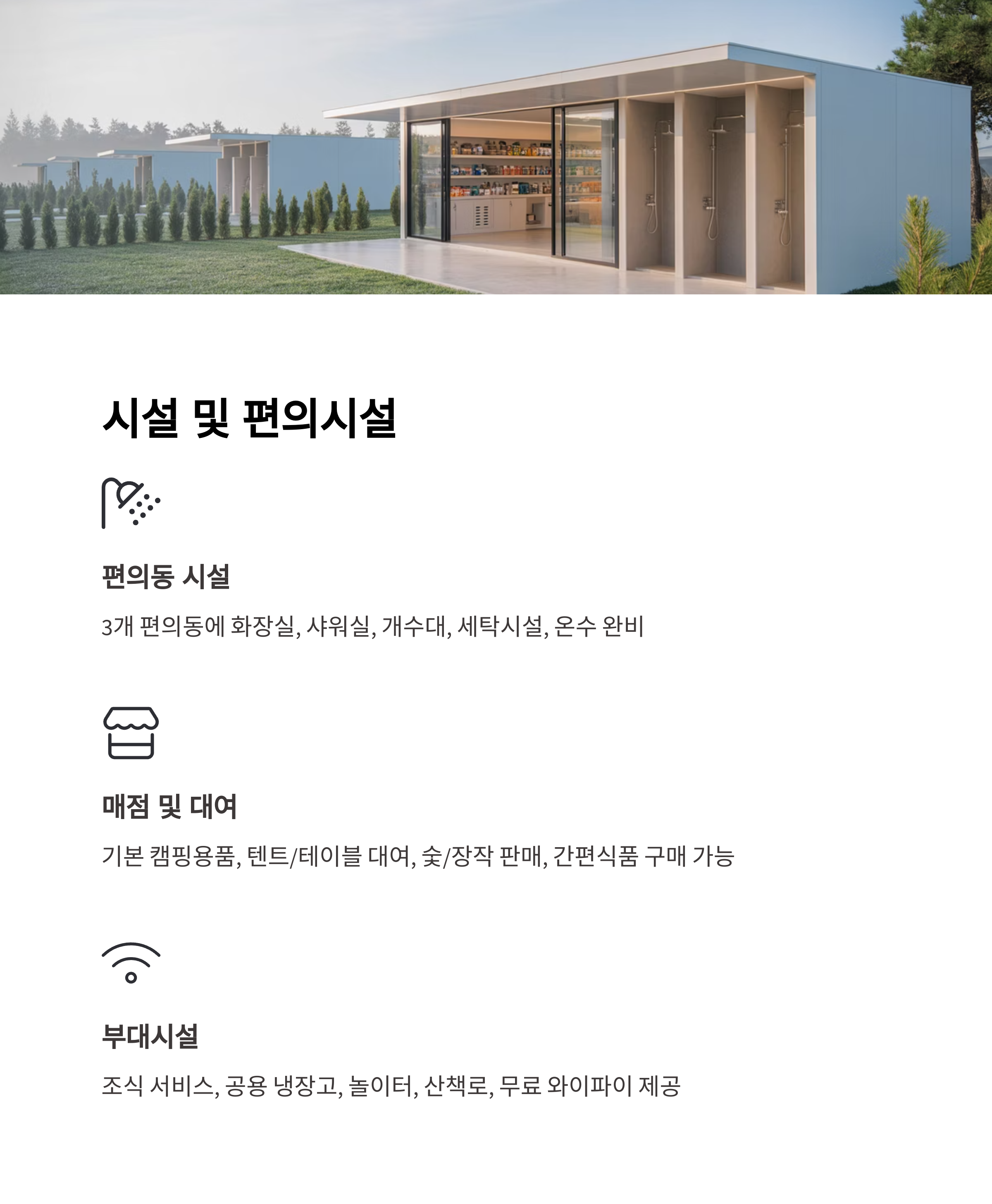 평화누리캠핑장은 2024년 대대적인 리뉴얼을 통해 최신 편의시설을 갖춘 모던한 캠핑장으로 탈바꿈했습니다. 깨끗하고 체계적인 시설 관리로 초보 캠퍼들도 편안하게 이용할 수 있습니다.