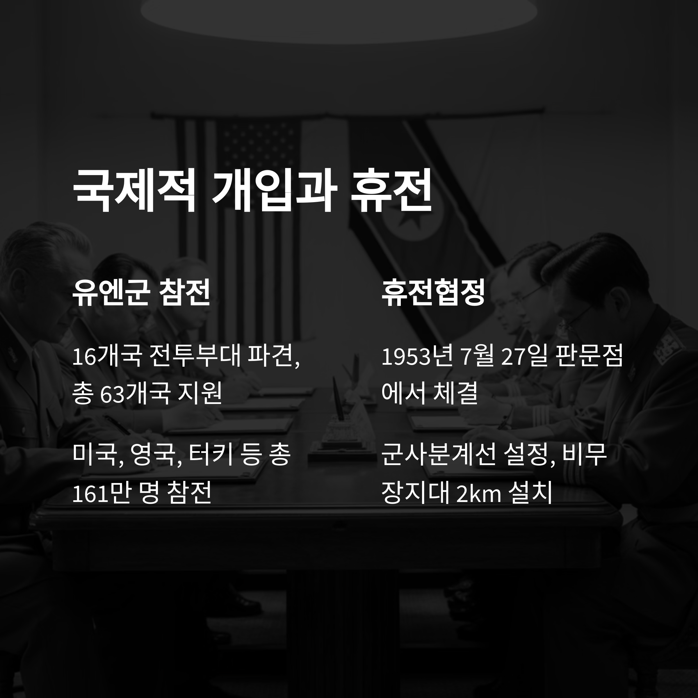 • 휴전 협정: 1953년 7월 27일 판문점에서 체결
