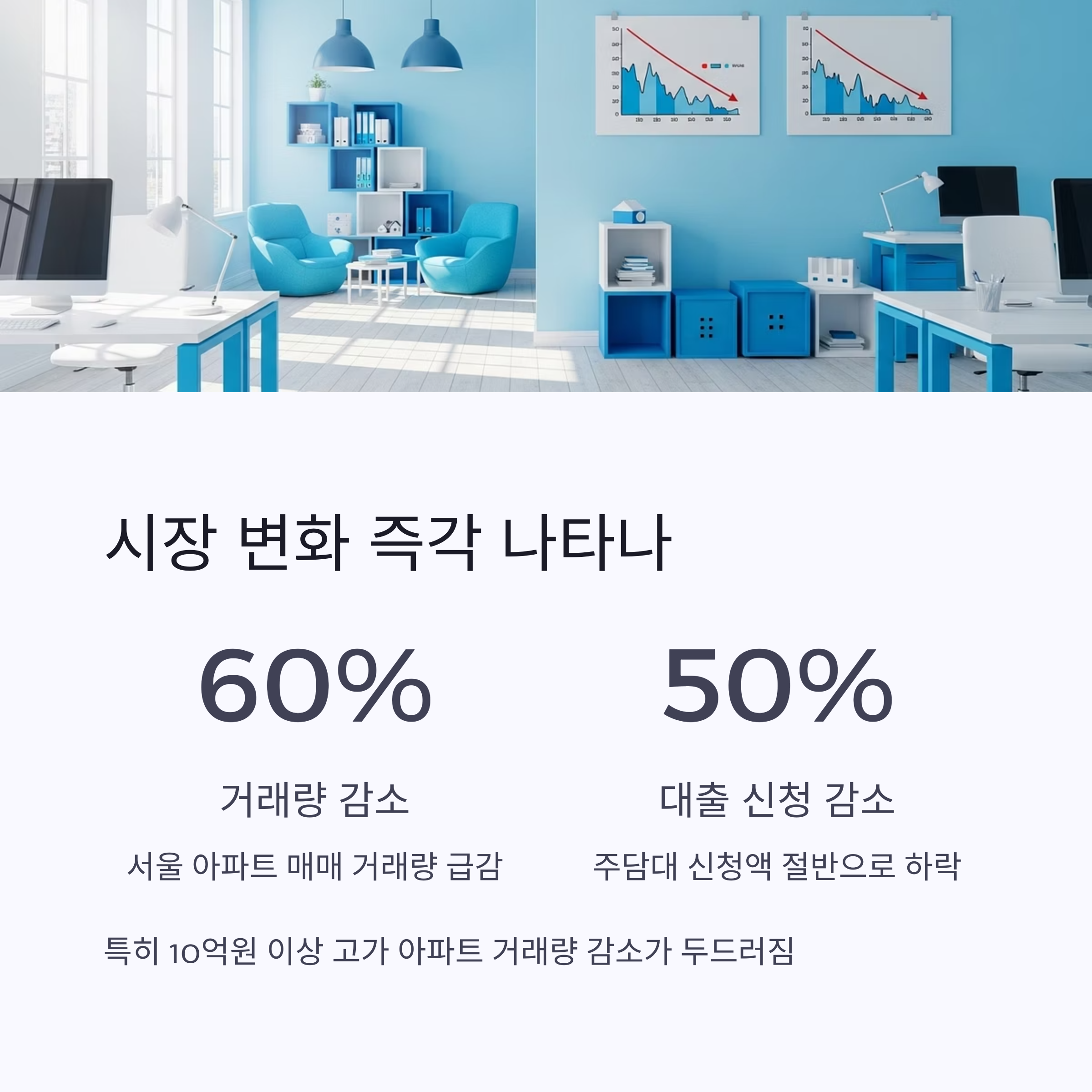 - 대출 신청 감소: 주담대 신청액 절반 수준으로 하락