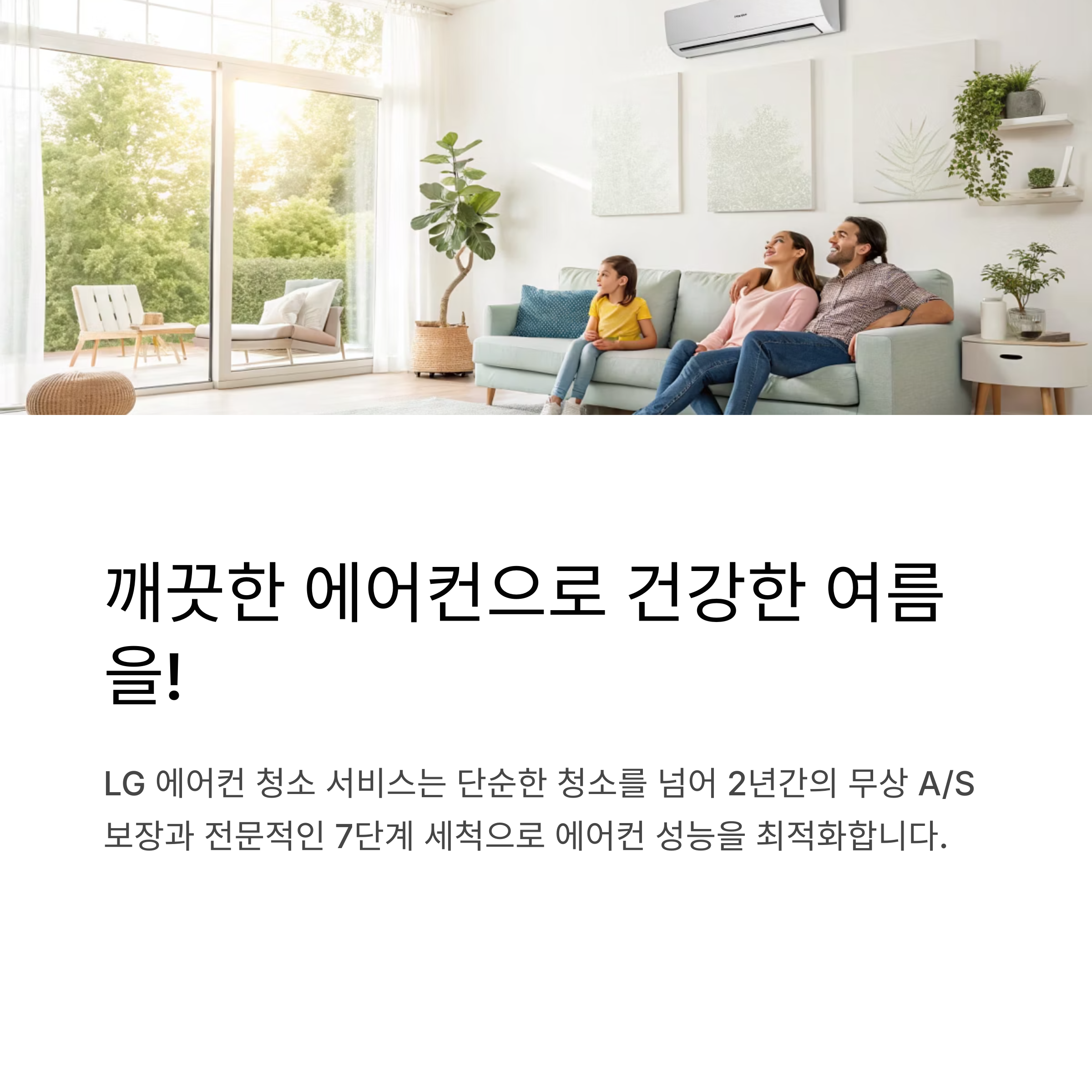 LG에어컨 청소 서비스는 단순한 청소를 넘어서 2년간의 무상 A/S 보장과 전문적인 7단계 세척 프로세스를 통해 에어컨의 성능을 최적화하는 종합 케어 서비스입니다.