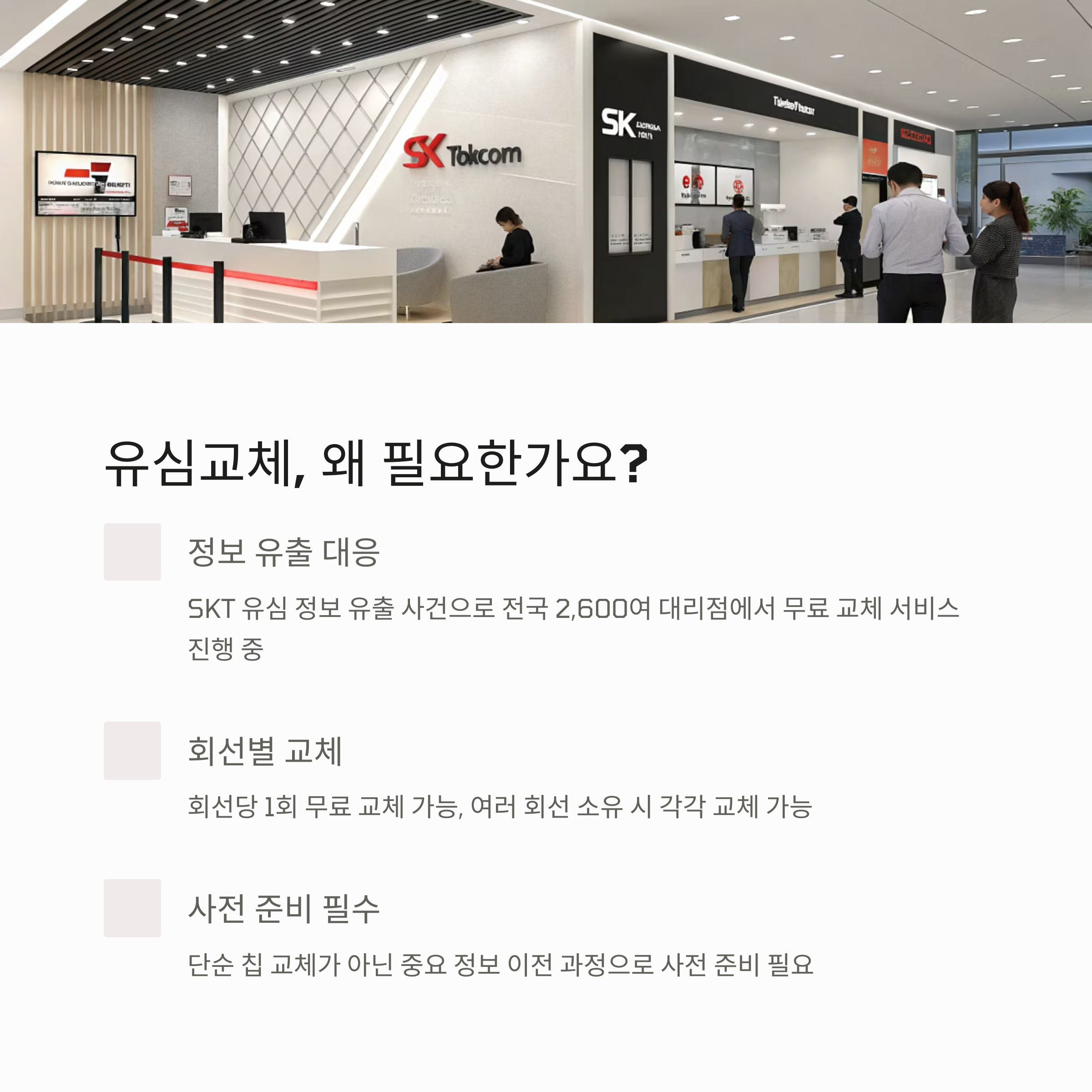 유심 교체는 단순히 하드웨어를 바꾸는 것이 아니라 보안과 직결된 중요한 과정입니다. 특히 SKT 유심 정보 유출 사태 이후 보안에 대한 중요성이 더욱 커졌습니다.