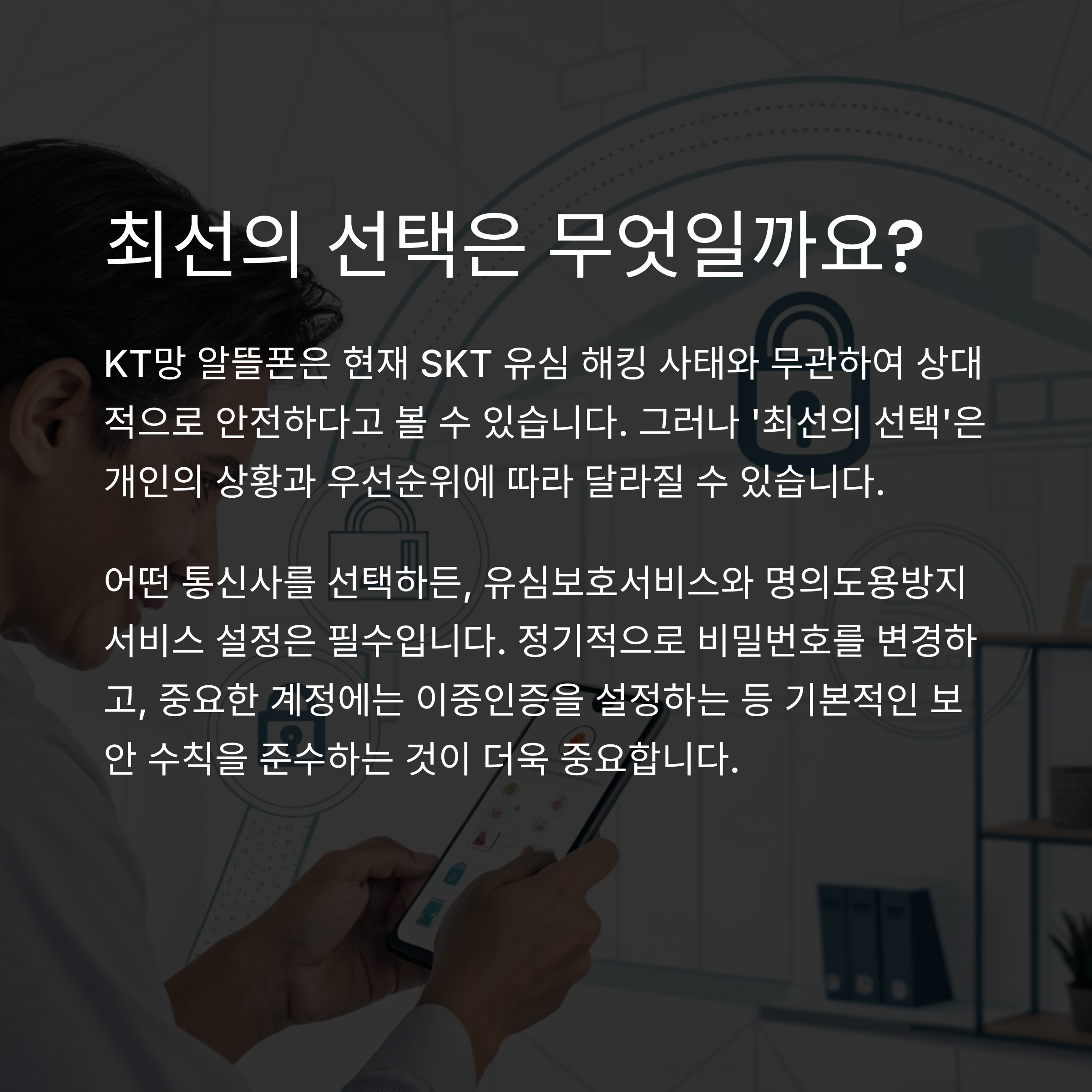 🤔 결론: KT 알뜰폰은 SKT 유심 피해 사태 이후 최선의 선택일까?